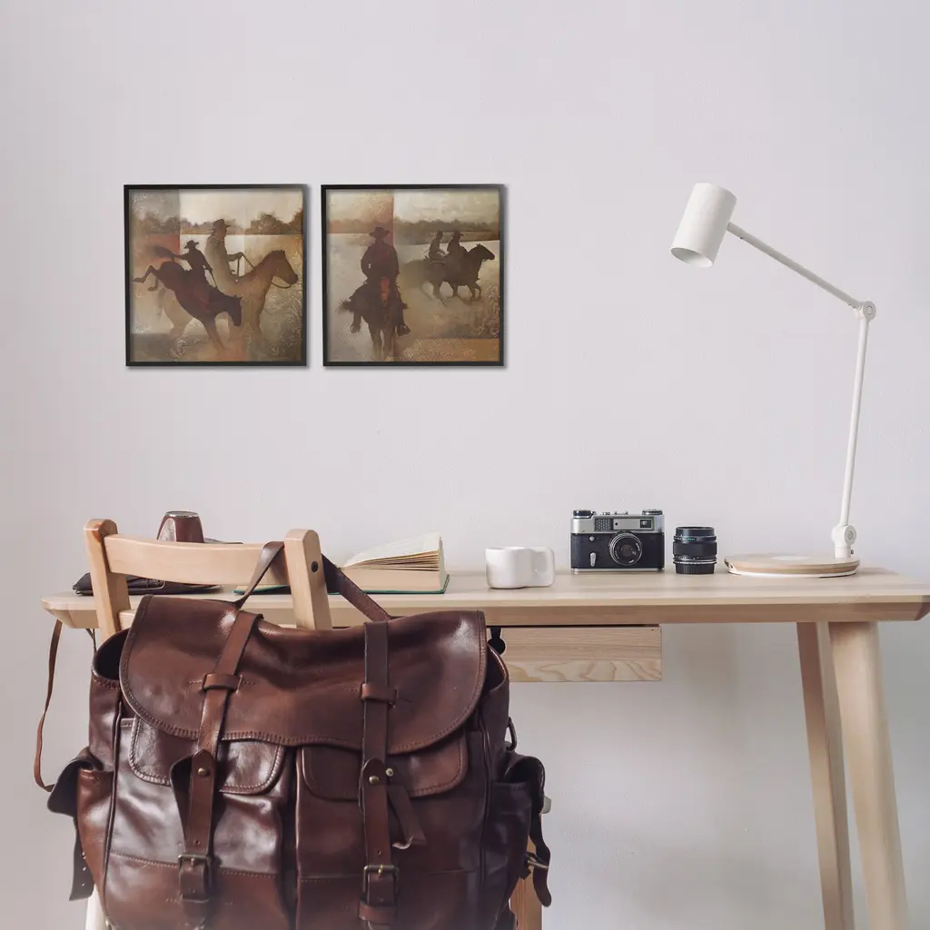 Fill any space in your home or office with our Framed Wall Art Sets. Our framed artwork is securely mounted into a 1.5-inch thick wood grain frame and ready to hang. Frames are available in three alluring styles: black, gray farmhouse and white. Stupell Wall Art is made in the USA.Features: Dimensions: 2 Piece Set, Each Panel is 12 x 1.5 x 12 FramedTwo Piece Framed Giclee Sets are available as 12"x12", 17"x17" or 24"x24" Panels. All Framed giclee Products have a 1.5" Depth.Wall Art is Ready to Hang with Hardware Free Hanging. No installation required. For Easy Set Up Lean or Layer Artwork on Shelf or Against Wall.Curated Wall Art Sets make it easy for you complete the theme for any room. Our giclée prints are carefully mounted on a durable MDF backing, and then perfectly finished in a 1.5 inch thick woodgrain frame. Mounted frame colors include black, gray farmhouse and white. Made In USA.Artwork Relates To: Rustic, Cowboy, Equestrian, Pattern, Horse, Rodeo, Southwestern, CountryDesign by White Ladder