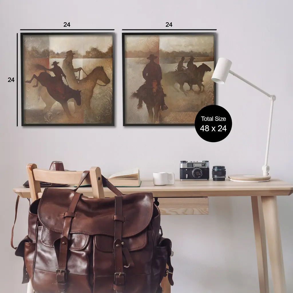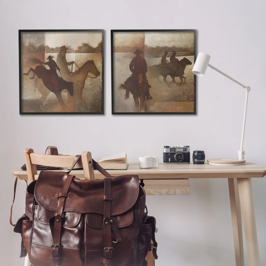 Fill any space in your home or office with our Framed Wall Art Sets. Our framed artwork is securely mounted into a 1.5-inch thick wood grain frame and ready to hang. Frames are available in three alluring styles: black, gray farmhouse and white. Stupell Wall Art is made in the USA.Features: Dimensions: 2 Piece Set, Each Panel is 12 x 1.5 x 12 FramedTwo Piece Framed Giclee Sets are available as 12"x12", 17"x17" or 24"x24" Panels. All Framed giclee Products have a 1.5" Depth.Wall Art is Ready to Hang with Hardware Free Hanging. No installation required. For Easy Set Up Lean or Layer Artwork on Shelf or Against Wall.Curated Wall Art Sets make it easy for you complete the theme for any room. Our giclée prints are carefully mounted on a durable MDF backing, and then perfectly finished in a 1.5 inch thick woodgrain frame. Mounted frame colors include black, gray farmhouse and white. Made In USA.Artwork Relates To: Rustic, Cowboy, Equestrian, Pattern, Horse, Rodeo, Southwestern, CountryDesign by White Ladder