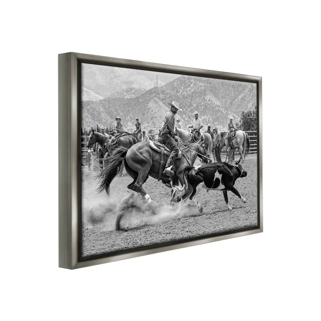 Elevate your home or office to the next level with Stupell Framed Floating Canvas Wall Art. Our premium hand-stretched canvas is mounted securely into a sturdy lightweight frame. The museum-style gap between the wrapped canvas and the box frame gives the illusion of floating artwork. Stupell Wall Art is made in the USA.Features: Dimensions: 21 x 1.7 x 17 Frame, 20 x 1.5 x 16 Canvas ArtFloating Frame Canvas Products are available in sizes 21"x17" and 31"x25". All Floating Frame Canvas Products have a 1.7" Depth.Wall Art is Ready to Hang with Hardware Free Hanging. No Installation required. For Easy Set Up Lean or Layer Artwork on Shelf or Against Wall. Artwork is Permently Fixed into the Frame.Our elevated 1.7" Thick Floating Frame is the perfect complement to our canvas style Wall Art. We use only the highest quality inks in house with industry leading printing solutions. Canvas is hand stretched over a durable wood foundation and then mounted securly into a Modern Box Frame. Made in the USA.Artwork Relates To: Animal, Horse, Mammal, Saddle, Equestrian, Person, Rodeo, Country, Southwestern, Cowboy, CattleDesign by Jerry Cowart