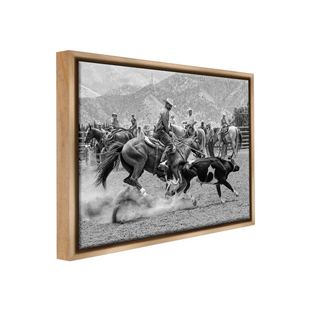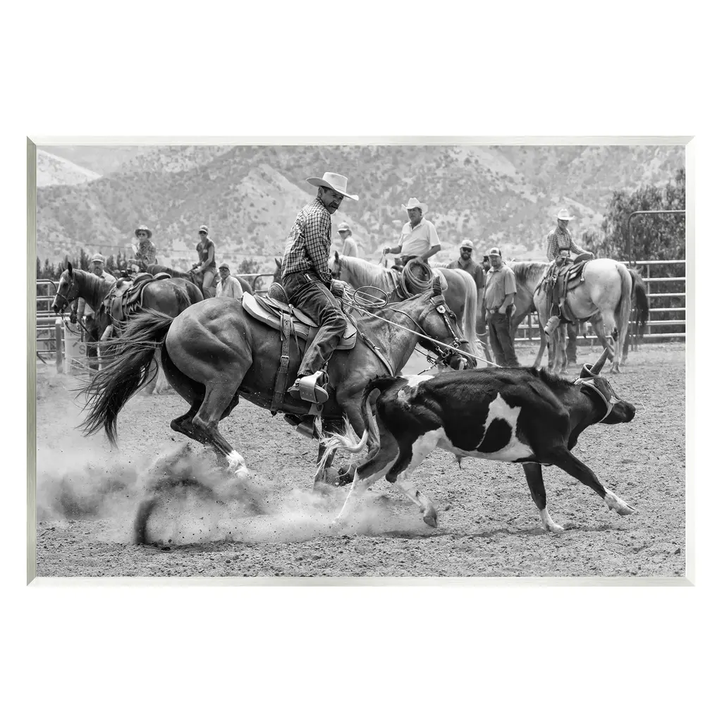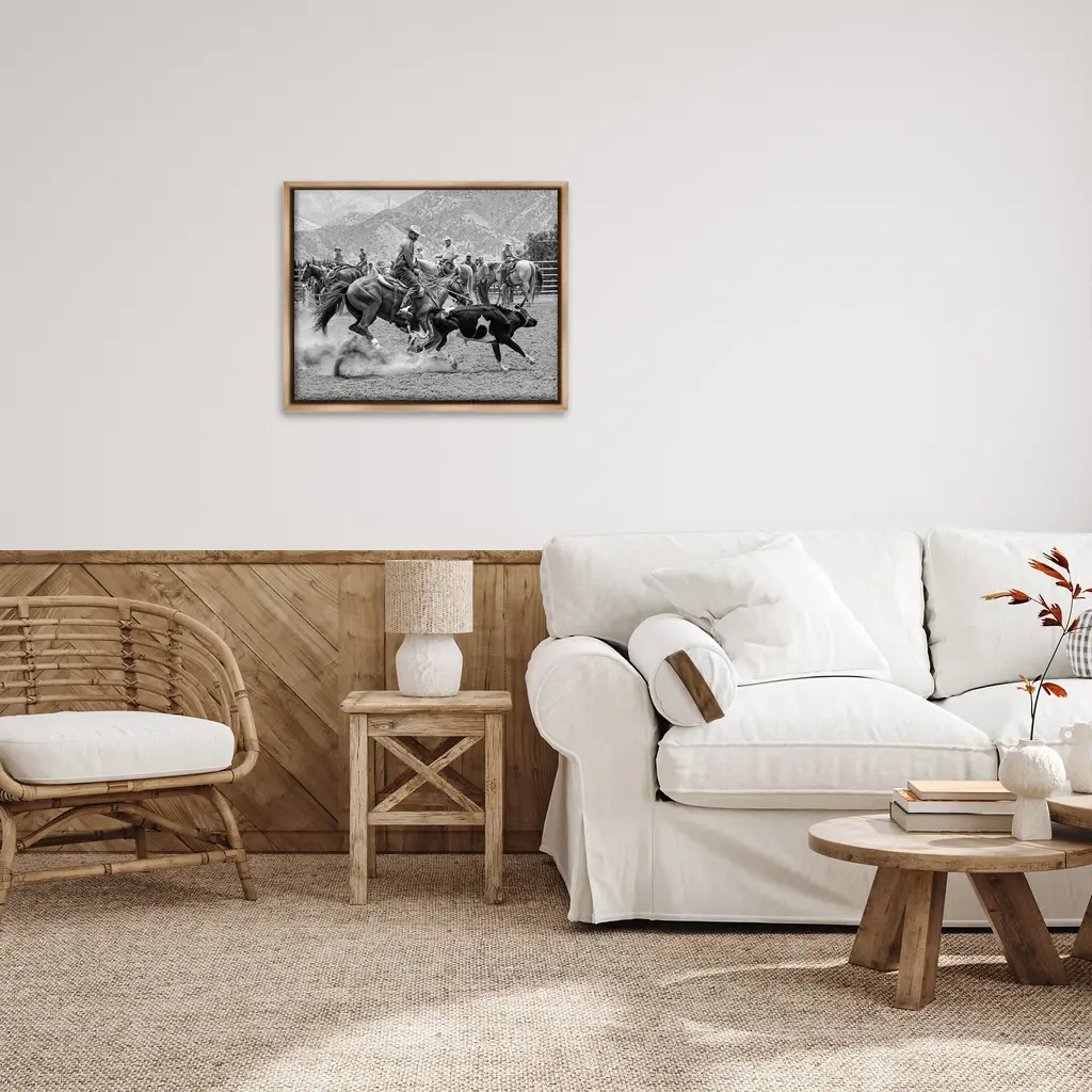 Elevate your home or office to the next level with Stupell Framed Floating Canvas Wall Art. Our premium hand-stretched canvas is mounted securely into a sturdy lightweight frame. The museum-style gap between the wrapped canvas and the box frame gives the illusion of floating artwork. Stupell Wall Art is made in the USA.Features: Dimensions: 21 x 1.7 x 17 Frame, 20 x 1.5 x 16 Canvas ArtFloating Frame Canvas Products are available in sizes 21"x17" and 31"x25". All Floating Frame Canvas Products have a 1.7" Depth.Wall Art is Ready to Hang with Hardware Free Hanging. No Installation required. For Easy Set Up Lean or Layer Artwork on Shelf or Against Wall. Artwork is Permently Fixed into the Frame.Our elevated 1.7" Thick Floating Frame is the perfect complement to our canvas style Wall Art. We use only the highest quality inks in house with industry leading printing solutions. Canvas is hand stretched over a durable wood foundation and then mounted securly into a Modern Box Frame. Made in the USA.Artwork Relates To: Animal, Horse, Mammal, Saddle, Equestrian, Person, Rodeo, Country, Southwestern, Cowboy, CattleDesign by Jerry Cowart