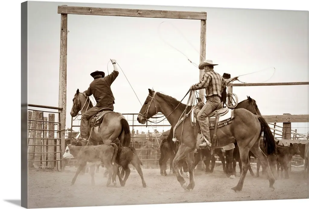 Stupell Rodeo Cowboys With Cattle Framed Giclee Art Design By Jerry Cowart - 30 X 24 - White