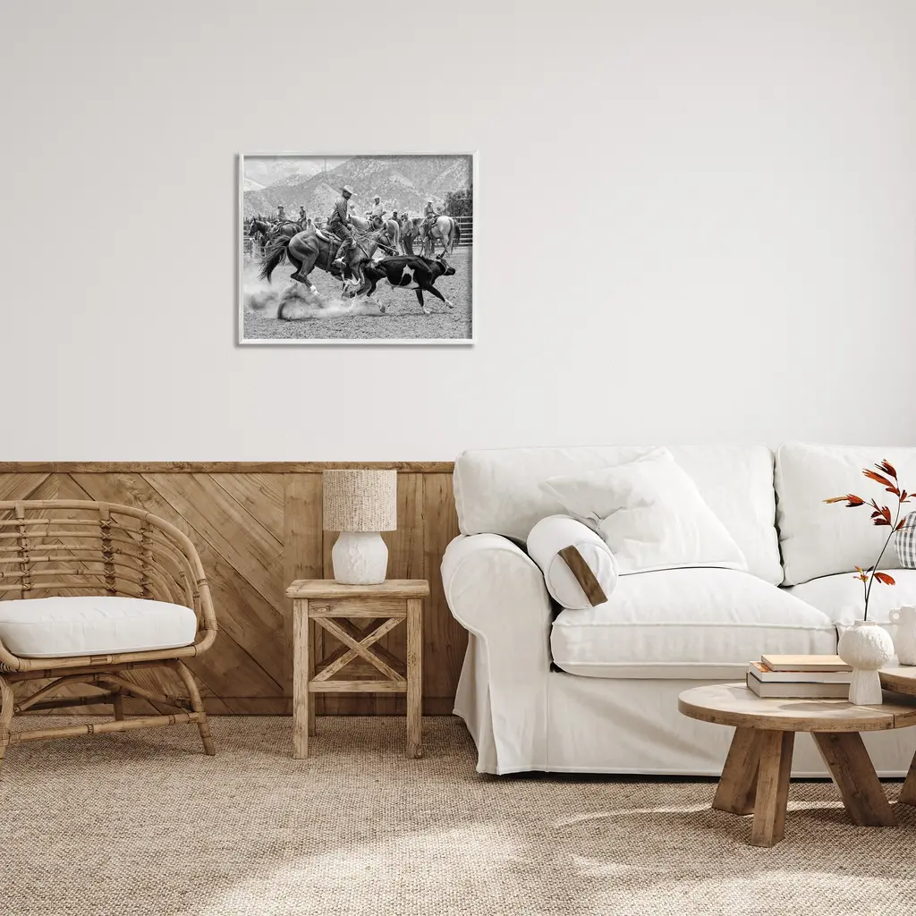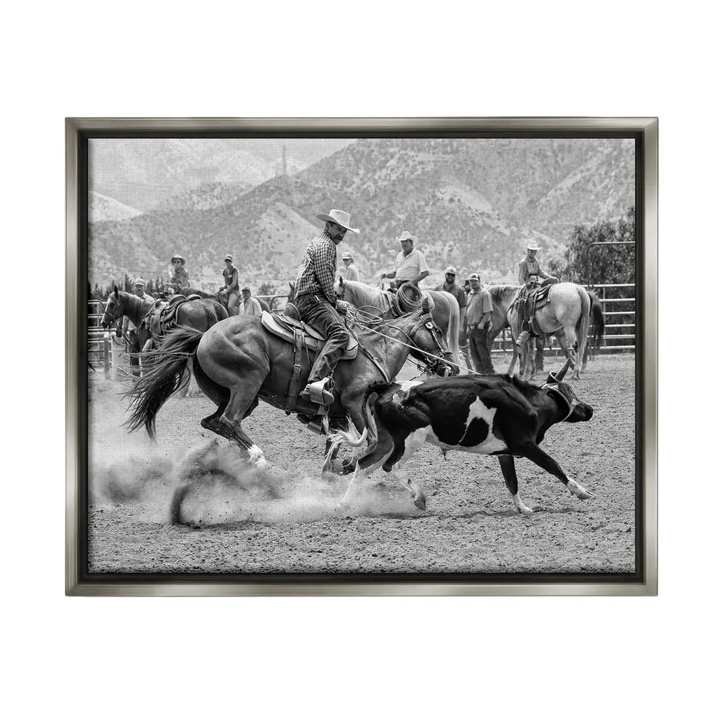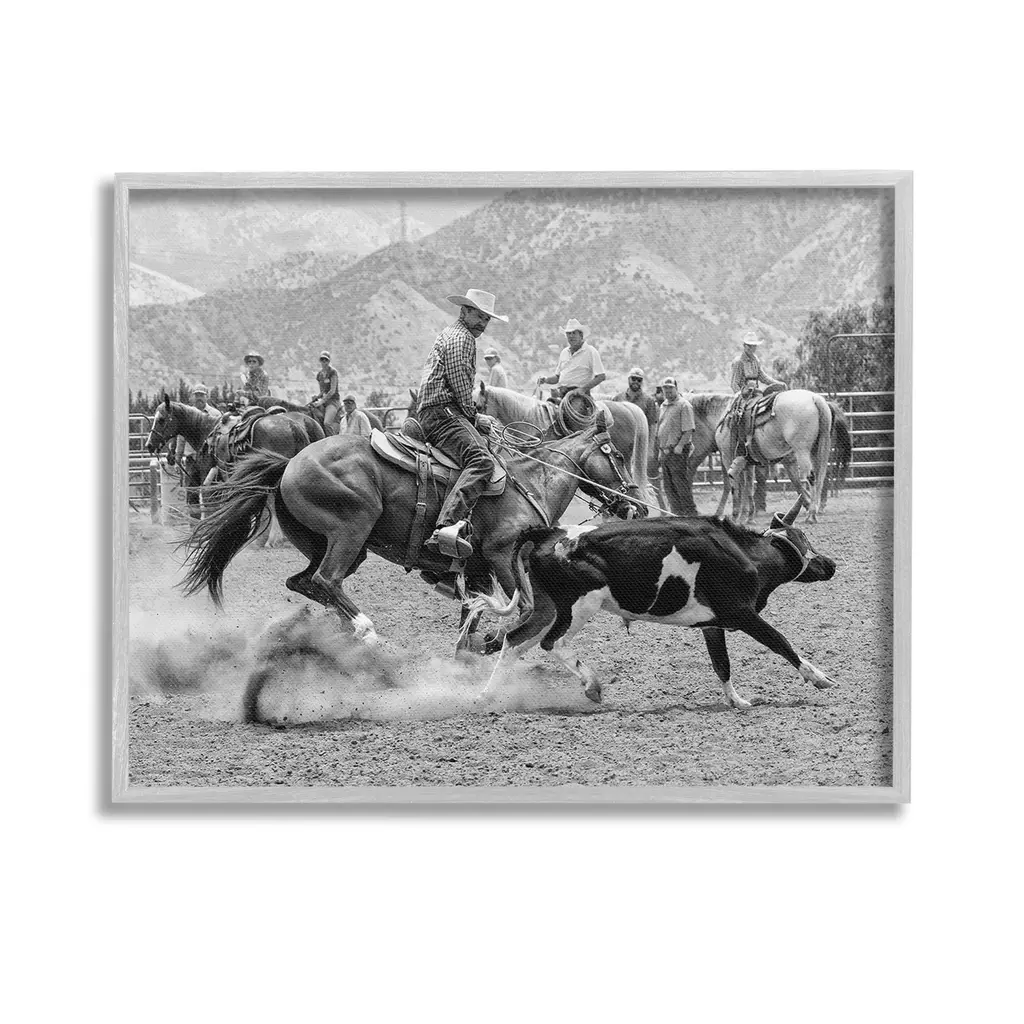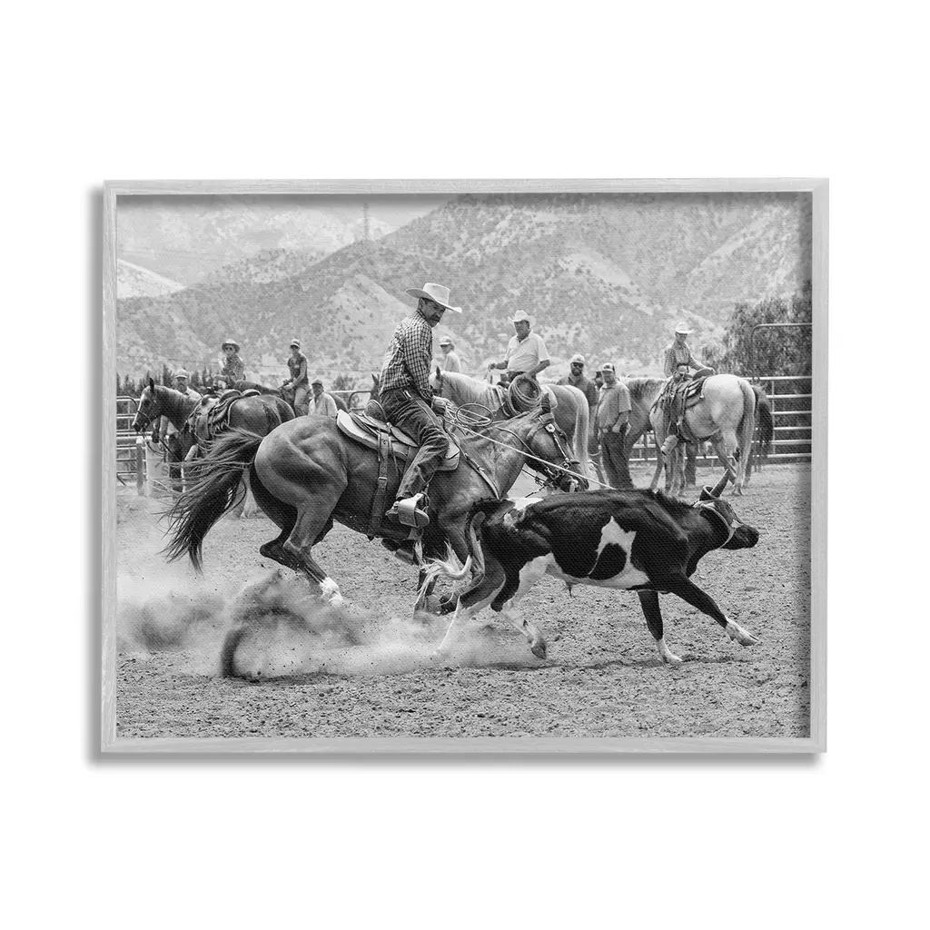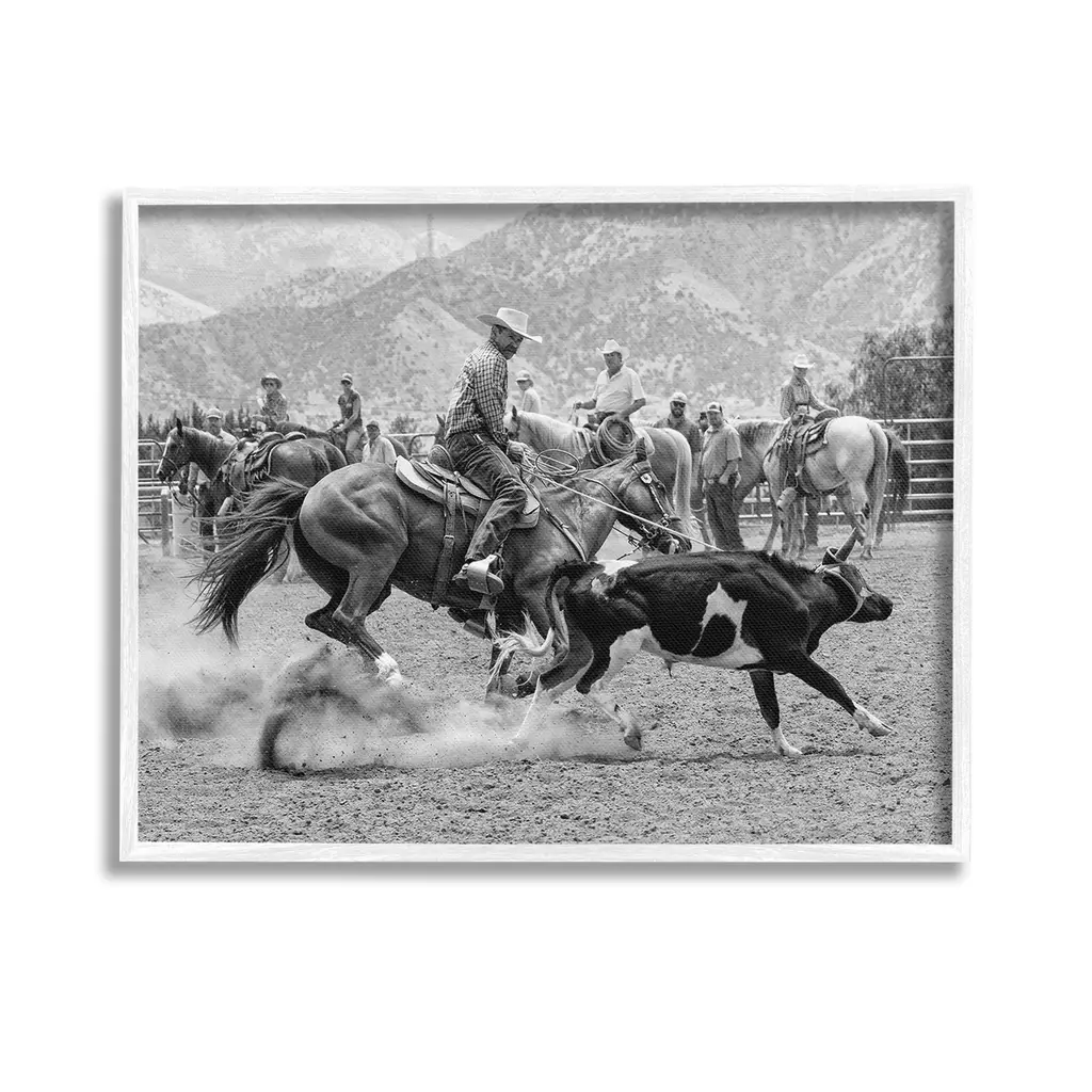Add dimension to any room with our textured Framed Giclee Artwork. Our framed artwork is securely mounted into a 1.5-inch thick wood grain frame and ready to hang. Frames are available in three alluring styles: black, gray farmhouse and white. In addition, you should check out our oversized options if you want a statement piece. Stupell Wall Art is made in the USA.Features: Dimensions: 14 x 1.5 x 11 FramedFramed Giclee Products are available in the sizes 14"x11", 20"x16" or 30"x24". All Framed Giclee Products have a 1.5" Depth. Wall Art is Ready to Hang with Hardware Free Hanging. No installation required. For Easy Set Up Lean or Layer Artwork on Shelf or Against Wall.Our giclée prints are carefully mounted on a durable MDF backing, and then perfectly finished in a 1.5 inch thick woodgrain frame. Mounted frame colors include black, gray farmhouse and white. Made In USA.Artwork Relates To: Animal, Horse, Mammal, Saddle, Equestrian, Person, Rodeo, Country, Southwestern, Cowboy, CattleDesign by Jerry Cowart