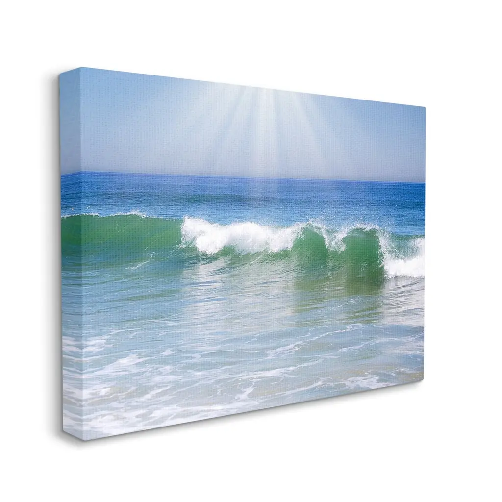 We create our stretched canvas to the highest standards. Using only the highest quality inks and canvas on Mimaki printers, we hand-cut and stretch each piece over a 1.5-inch thick wooden frame for hanging. As a result, the art comes ready to hang on the sturdy ledge with no installation required. Stupell Wall Art is made in the USA.Features: Dimensions: 20 x 1.5 x 16 InchesStretched Canvas Sizes Include Standard: 20 x 1.5 x 16 Large: 30 x 1.5 x 20 X-Large: 40 x 1.5 x 30 Oversized: 48 x 1.5 x 36Wall Art is Ready to Hang with Hardware Free Hanging. No installation required. For Easy Set Up Lean or Layer Artwork on Shelf or Against Wall.Our stretched canvas is created with the highest standards. We use only the highest quality inks and canvas on our in house Mimaki printers, and then hand cut and stretch each piece over a 1.5 inch thick wooden frame for hanging. Made In USA.Artwork Relates To: Nature, Sky, Horizon, Sea, Water, Beach, Coast, Shoreline, Scenery, Sea WavesDesign by Graffi*Tee Studios