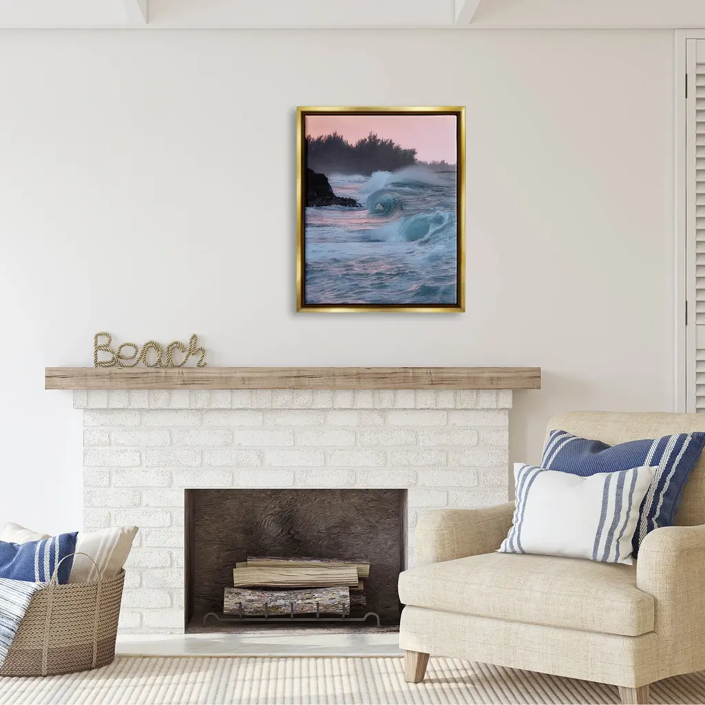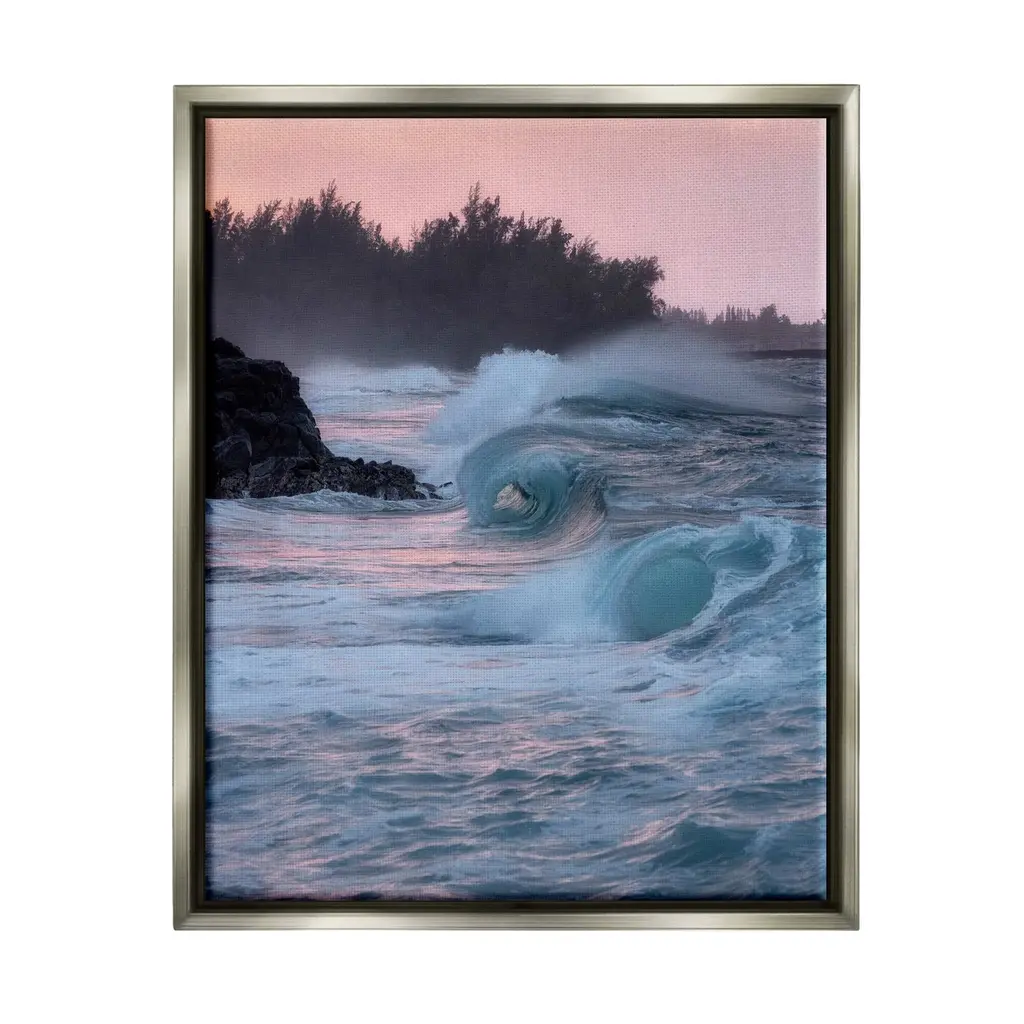 Elevate your home or office to the next level with Stupell Framed Floating Canvas Wall Art. Our premium hand-stretched canvas is mounted securely into a sturdy lightweight frame. The museum-style gap between the wrapped canvas and the box frame gives the illusion of floating artwork. Stupell Wall Art is made in the USA.Features: Dimensions: 17 x 1.7 x 21 Frame, 16 x 1.5 x 20 Canvas ArtFloating Frame Sizes Include Standard: 17 x 1.7 x 21 Oversized: 25 x 1.7 x 31Wall Art is Ready to Hang - No Installation or Hardware Needed. For Easy Set Up Lean or Layer Artwork on Shelf or Against Wall.Our elevated 1.7" Thick Floating Frame is the perfect complement to our canvas style Wall Art. We use only the highest quality inks in house with industry leading printing solutions. Canvas is hand stretched over a durable wood foundation and then mounted securly into a Modern Box Frame. Made in the USA.Artwork Relates To: Nature, Outdoors, Sea, Water, Sea Waves, Sky, Sunrise, SunsetDesign by Dennis Frates