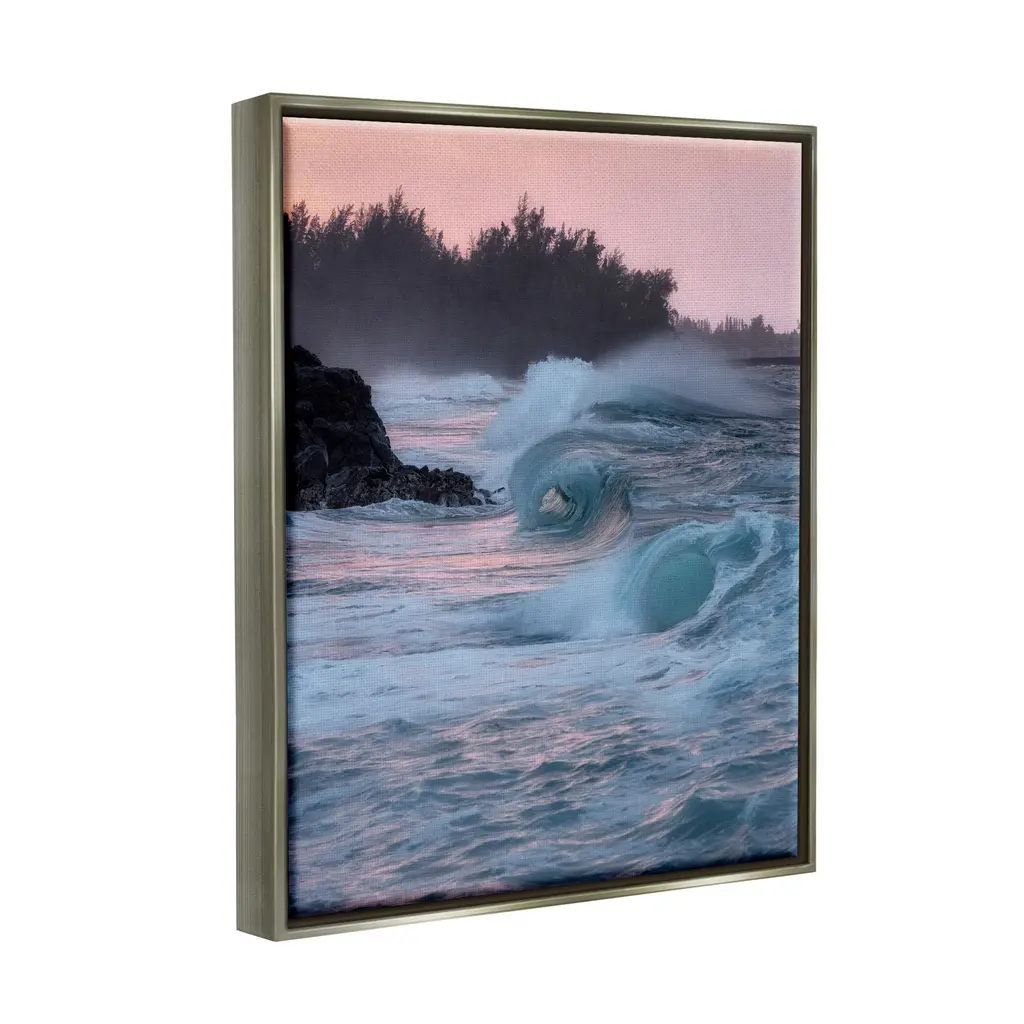 Elevate your home or office to the next level with Stupell Framed Floating Canvas Wall Art. Our premium hand-stretched canvas is mounted securely into a sturdy lightweight frame. The museum-style gap between the wrapped canvas and the box frame gives the illusion of floating artwork. Stupell Wall Art is made in the USA.Features: Dimensions: 17 x 1.7 x 21 Frame, 16 x 1.5 x 20 Canvas ArtFloating Frame Sizes Include Standard: 17 x 1.7 x 21 Oversized: 25 x 1.7 x 31Wall Art is Ready to Hang - No Installation or Hardware Needed. For Easy Set Up Lean or Layer Artwork on Shelf or Against Wall.Our elevated 1.7" Thick Floating Frame is the perfect complement to our canvas style Wall Art. We use only the highest quality inks in house with industry leading printing solutions. Canvas is hand stretched over a durable wood foundation and then mounted securly into a Modern Box Frame. Made in the USA.Artwork Relates To: Nature, Outdoors, Sea, Water, Sea Waves, Sky, Sunrise, SunsetDesign by Dennis Frates