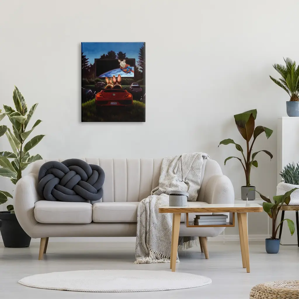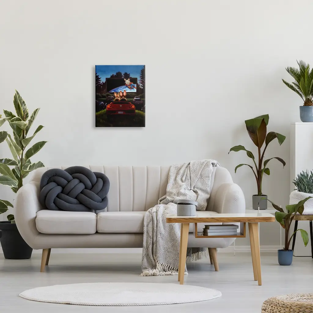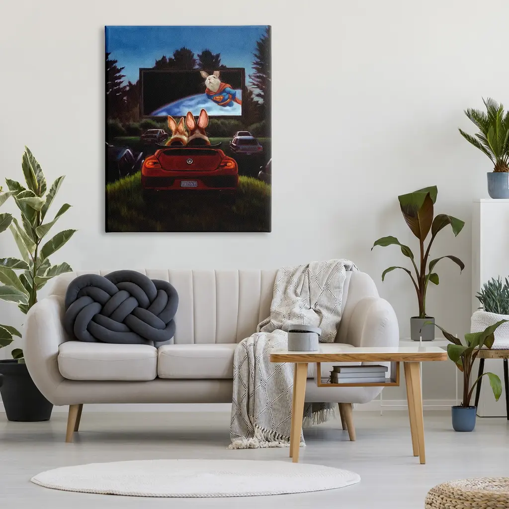 Proudly made in the USA, Our stretched canvas is created with the highest standards. We use only the highest quality inks and canvas on our in house Mimaki printers, and then hand cut and stretch each piece over a 1.5 inch thick wooden frame for hanging. The art comes ready to hang with no installation required. Not to mention, at this size, it is sure to be the focal point of any room!Features: Wall Art is Ready to Hang - No Installation or Hardware Needed. For Easy Set Up Lean or Layer Artwork on Shelf or Against Wall.Our stretched canvas is created with the highest standards. We use only the highest quality inks and canvas on our in house Mimaki printers, and then hand cut and stretch each piece over a 1.5 inch thick wooden frame for hanging. Made In USA.Artwork Relates To: Car; Automobile; Transportation; Vehicle; Outdoors; Bunny, Rabbit, Movie Design by Lucia Heffernan