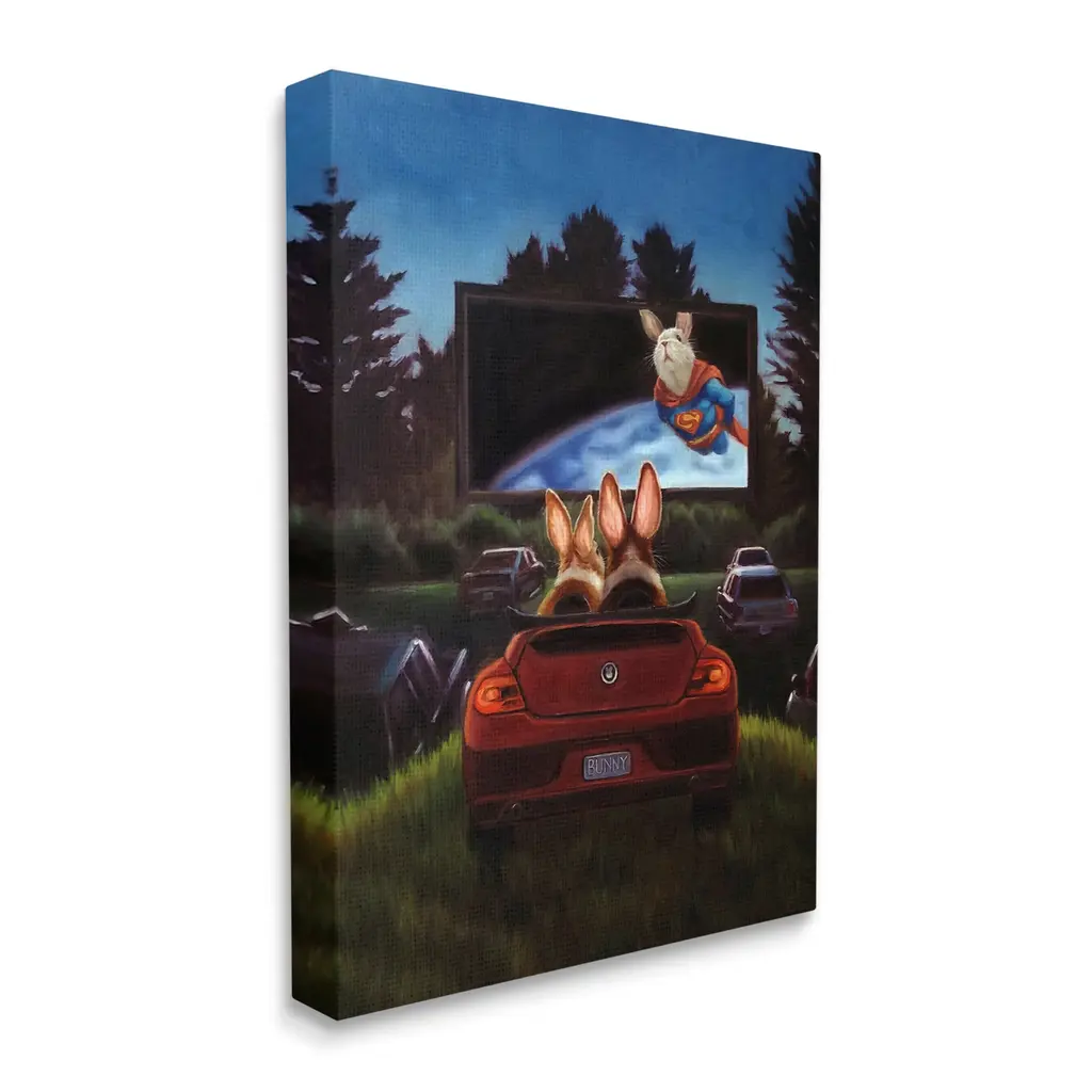 Stupell Romantic Bunny Couple Drive-In Movie Date Animals Canvas Wall Art, Design By Lucia Heffernan - 24 X 30