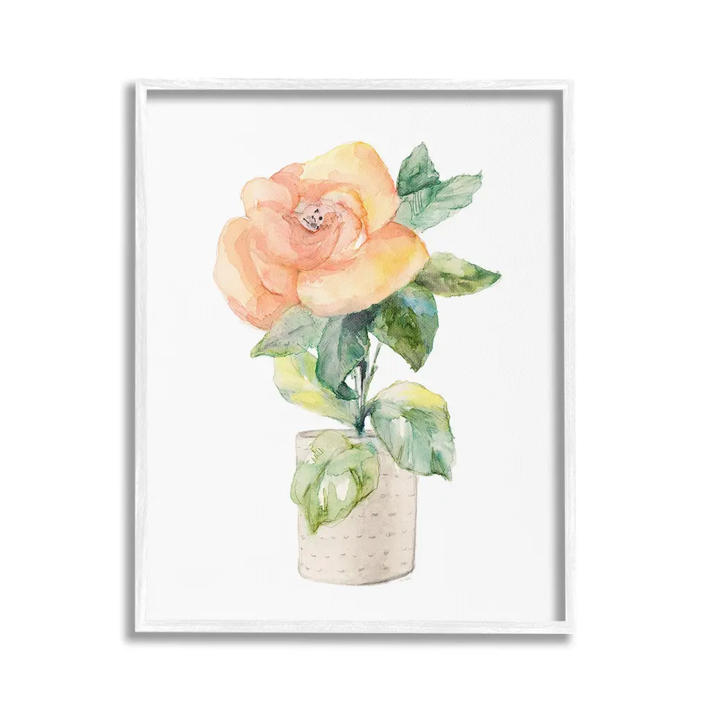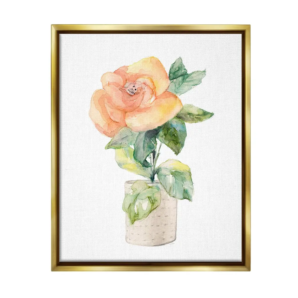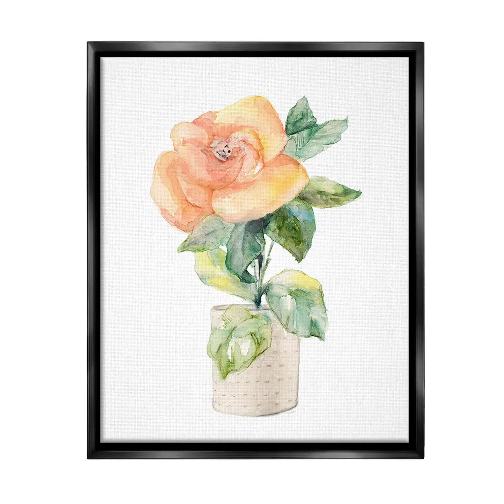 Elevate your home or office to the next level with Stupell Framed Floating Canvas Wall Art. Our premium hand-stretched canvas is mounted securely into a sturdy lightweight frame. The museum-style gap between the wrapped canvas and the box frame gives the illusion of floating artwork. Stupell Wall Art is made in the USA.Features: Dimensions: 17 x 1.7 x 21 Frame, 16 x 1.5 x 20 Canvas ArtFloating Frame Canvas Products are available in sizes 17"x21" and 25"x31". All Floating Frame Canvas Products have a 1.7" Depth.Wall Art is Ready to Hang with Hardware Free Hanging. No Installation required. For Easy Set Up Lean or Layer Artwork on Shelf or Against Wall. Artwork is Permently Fixed into the Frame.Our elevated 1.7" Thick Floating Frame is the perfect complement to our canvas style Wall Art. We use only the highest quality inks in house with industry leading printing solutions. Canvas is hand stretched over a durable wood foundation and then mounted securly into a Modern Box Frame. Made in the USA.Artwork Relates To: Flower, Plant, Rose, Jar, Pottery, Vase, Bouquet, Pattern, Petal, FloralDesign by Lanie Loreth