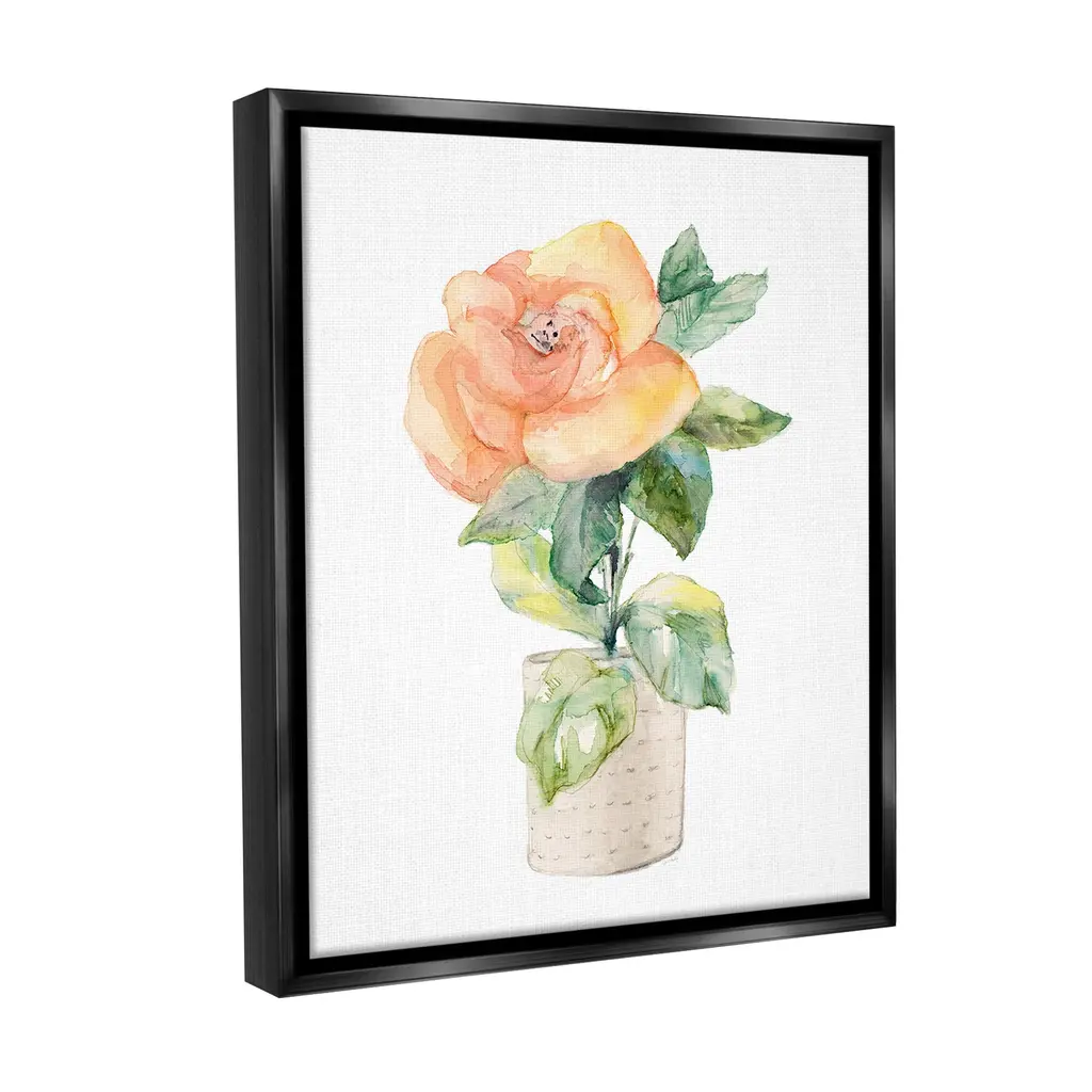 Elevate your home or office to the next level with Stupell Framed Floating Canvas Wall Art. Our premium hand-stretched canvas is mounted securely into a sturdy lightweight frame. The museum-style gap between the wrapped canvas and the box frame gives the illusion of floating artwork. Stupell Wall Art is made in the USA.Features: Dimensions: 17 x 1.7 x 21 Frame, 16 x 1.5 x 20 Canvas ArtFloating Frame Canvas Products are available in sizes 17"x21" and 25"x31". All Floating Frame Canvas Products have a 1.7" Depth.Wall Art is Ready to Hang with Hardware Free Hanging. No Installation required. For Easy Set Up Lean or Layer Artwork on Shelf or Against Wall. Artwork is Permently Fixed into the Frame.Our elevated 1.7" Thick Floating Frame is the perfect complement to our canvas style Wall Art. We use only the highest quality inks in house with industry leading printing solutions. Canvas is hand stretched over a durable wood foundation and then mounted securly into a Modern Box Frame. Made in the USA.Artwork Relates To: Flower, Plant, Rose, Jar, Pottery, Vase, Bouquet, Pattern, Petal, FloralDesign by Lanie Loreth