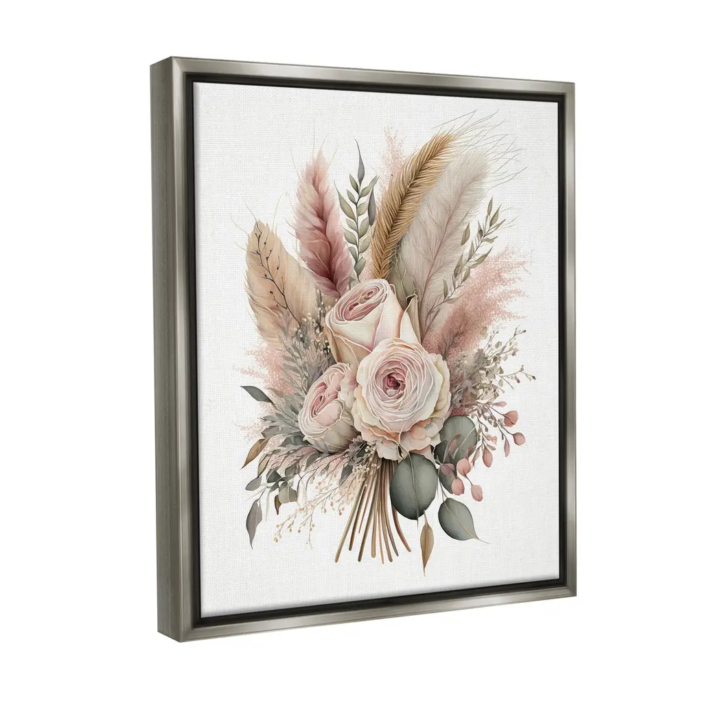Elevate your home or office to the next level with Stupell Framed Floating Canvas Wall Art. Our premium hand-stretched canvas is mounted securely into a sturdy lightweight frame. The museum-style gap between the wrapped canvas and the box frame gives the illusion of floating artwork. Stupell Wall Art is made in the USA.Features: Dimensions: 17 x 1.7 x 21 Frame, 16 x 1.5 x 20 Canvas ArtFloating Frame Canvas Products are available in sizes 17"x21" and 25"x31". All Floating Frame Canvas Products have a 1.7" Depth.Wall Art is Ready to Hang with Hardware Free Hanging. No Installation required. For Easy Set Up Lean or Layer Artwork on Shelf or Against Wall. Artwork is Permently Fixed into the Frame.Our elevated 1.7" Thick Floating Frame is the perfect complement to our canvas style Wall Art. We use only the highest quality inks in house with industry leading printing solutions. Canvas is hand stretched over a durable wood foundation and then mounted securly into a Modern Box Frame. Made in the USA.Artwork Relates To: Flower, Floral, Botanical, Plant, Leaf, Minimal, Traditional, Feather, Rose, BohoDesign by LSR Design Studio