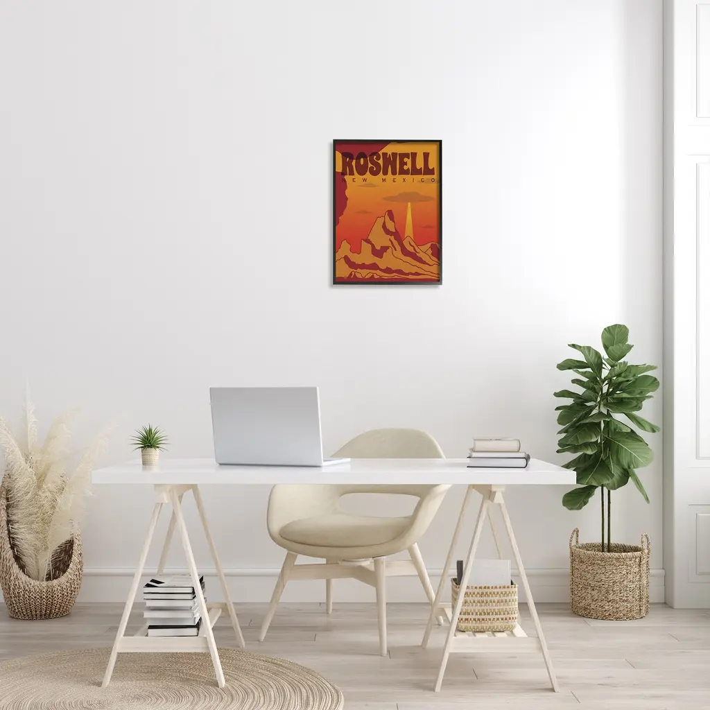 Add dimension to any room with our textured Framed Giclee Artwork. Our framed artwork is securely mounted into a 1.5-inch thick wood grain frame and ready to hang. Frames are available in three alluring styles: black, gray farmhouse and white. In addition, you should check out our oversized options if you want a statement piece. Stupell Wall Art is made in the USA.Features: Dimensions: 11 x 1.5 x 14 FramedFramed Giclee Sizes Include Standard: 11 x 1.5 x 14 Large: 16 x 1.5 x 20 Oversized: 24 x 1.5 x 30Wall Art is Ready to Hang - No Installation or Hardware Needed. For Easy Set Up Lean or Layer Artwork on Shelf or Against Wall.Our giclée prints are carefully mounted on a durable MDF backing, and then perfectly finished in a 1.5 inch thick woodgrain frame. Mounted frame colors include black, gray farmhouse and white. Made In USA.Artwork Relates To: Desert, Cliffs, Sunset, Vintage, UFO, Roswell New MexicoDesign by Lil' Rue