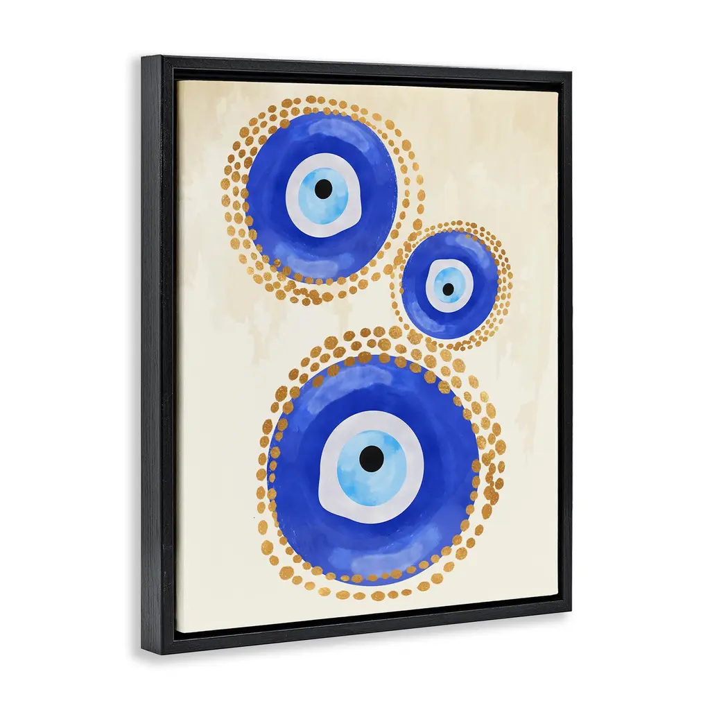 Elevate your home or office to the next level with Stupell Framed Floating Canvas Wall Decor. Our premium hand stretched canvas is mounted securely into a sturdy lightweight frame. The museum style gap between wrapped canvas and box frame gives the illusion of floating artwork. Features: Wall Art is Ready to Hang - No Installation or Hardware Needed. For Easy Set Up Lean or Layer Artwork on Shelf or Against Wall.Our elevated 1.5" Thick Floating Frame is the perfect complement to our canvas style Wall Art. We use only the highest quality inks in house with industry leading printing solutions. Canvas is hand stretched over a durable wood foundation and then mounted securely into a Modern Box Frame. Made in the USA.Artwork Relates To: Modern; Abstract; Evil eyeDesign by Two Smart Blondes