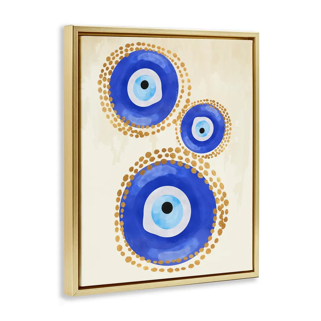 Elevate your home or office to the next level with Stupell Framed Floating Canvas Wall Decor. Our premium hand stretched canvas is mounted securely into a sturdy lightweight frame. The museum style gap between wrapped canvas and box frame gives the illusion of floating artwork. Features: Wall Art is Ready to Hang - No Installation or Hardware Needed. For Easy Set Up Lean or Layer Artwork on Shelf or Against Wall.Our elevated 1.5" Thick Floating Frame is the perfect complement to our canvas style Wall Art. We use only the highest quality inks in house with industry leading printing solutions. Canvas is hand stretched over a durable wood foundation and then mounted securely into a Modern Box Frame. Made in the USA.Artwork Relates To: Modern; Abstract; Evil eyeDesign by Two Smart Blondes