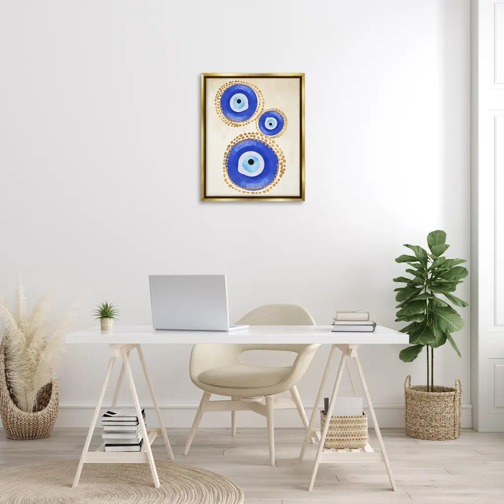Stupell Round Blue Evil Eye Pattern Lustrous Dotted Detail Floater Frame, Design By Two Smart Blondes - 25 X 31 - Gold