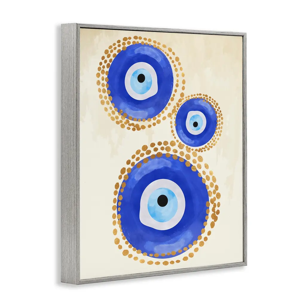 Stupell Round Blue Evil Eye Pattern Lustrous Dotted Detail Framed Wall Art, Design By Two Smart Blondes - 16 X 20 - Grey