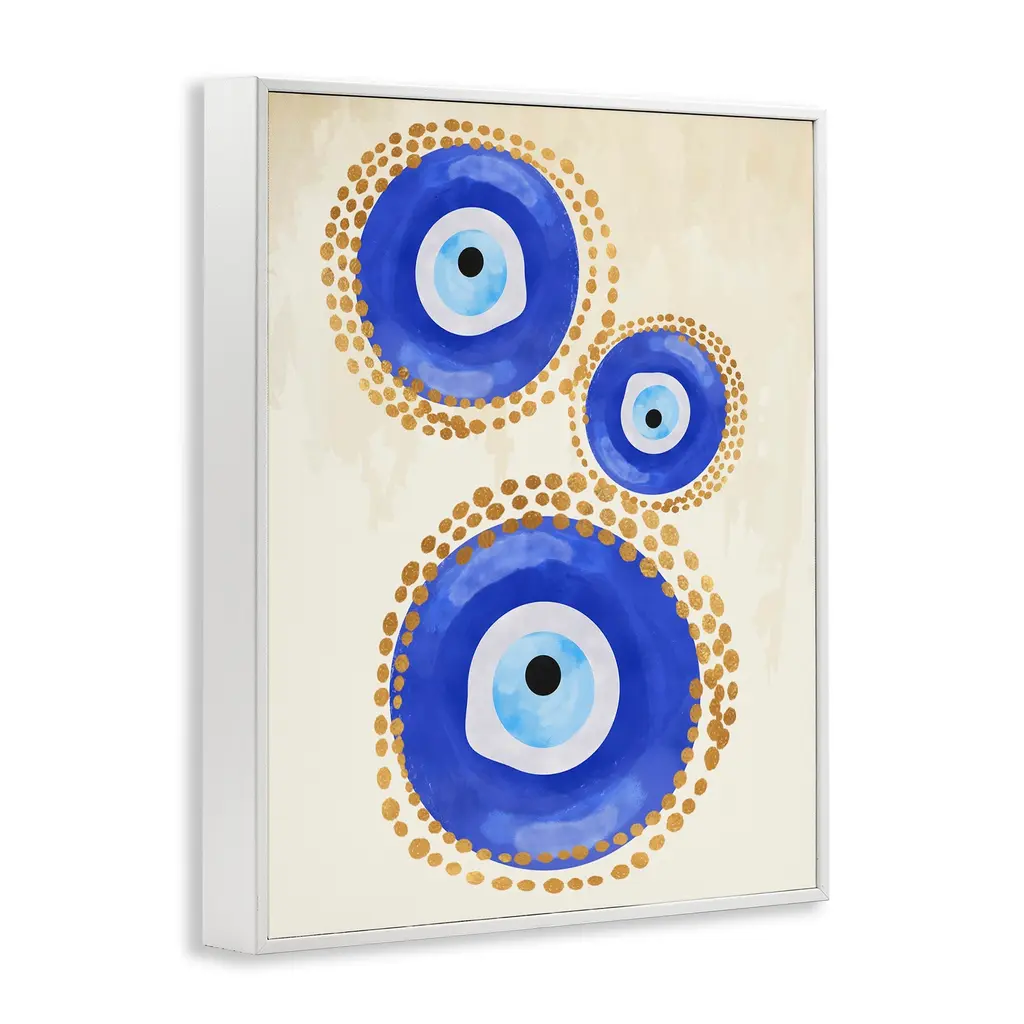 Stupell Round Blue Evil Eye Pattern Lustrous Dotted Detail Framed Wall Art, Design By Two Smart Blondes - 24 X 30 - White