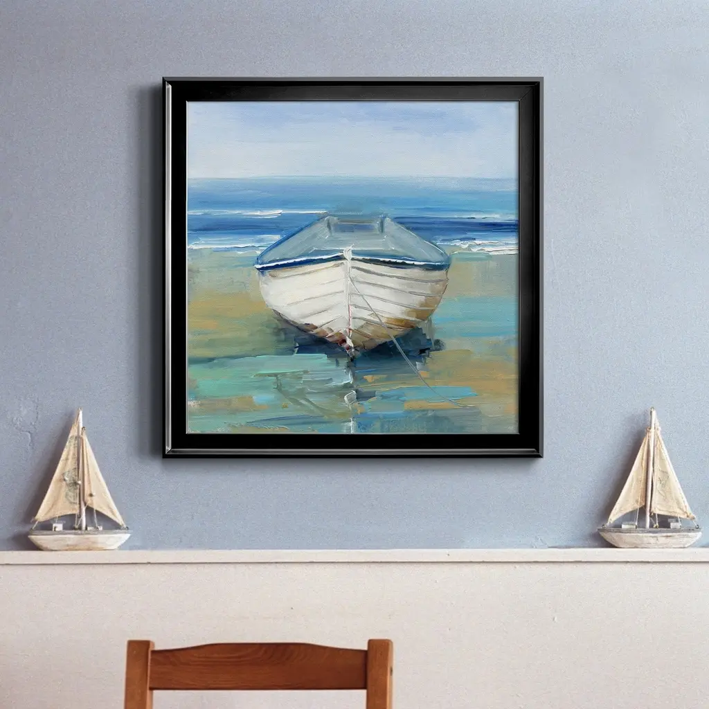 Our wall plaques start as high-quality lithograph prints mounted on durable 0.5-inch thick MDF wood. Each piece is hand finished and comes with a fresh layer of white foil on the sides to give it a crisp, clean look. Plaques arrive ready to hang without installation and come with removable plastic corners to keep them from damage in transit. Wall Art is made in the USA.Features: Dimensions: 12 x 0.5 x 12 InchesWall Art is Ready to Hang with Hardware Free Hanging. No installation required. For Easy Set Up Lean or Layer Artwork on Shelf or Against Wall.All of our wall plaques start off as high quality lithograph prints that are then mounted on durable 0.5 inch thick MDF wood. Each piece is hand finished and comes with a fresh layer of foil on the sides to give it a crisp clean look. Made In USA.Artwork Relates To: Boat, Watercraft, Dinghy, Rowboat, Canoe, Shore, Beach, CoastDesign by RB