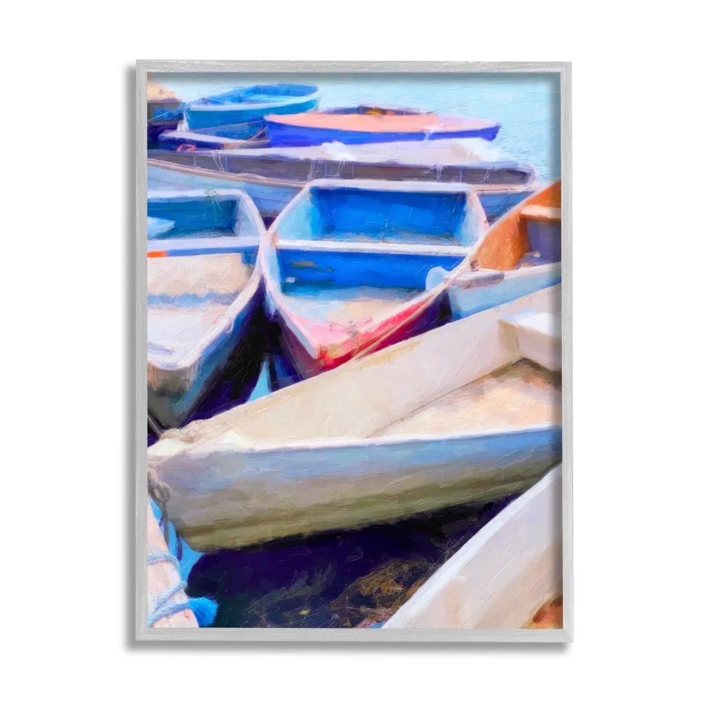 Add dimension to any room with our textured Framed Giclee Artwork. Our framed artwork is securely mounted into a 1.5-inch thick wood grain frame and ready to hang. Frames are available in three alluring styles: black, gray farmhouse and white. In addition, you should check out our oversized options if you want a statement piece. Stupell Wall Art is made in the USA.Features: Dimensions: 11 x 1.5 x 14 FramedFramed Giclee Sizes Include Standard: 11 x 1.5 x 14 Large: 16 x 1.5 x 20 Oversized: 24 x 1.5 x 30Wall Art is Ready to Hang with Hardware Free Hanging. No installation required. For Easy Set Up Lean or Layer Artwork on Shelf or Against Wall.Our giclée prints are carefully mounted on a durable MDF backing, and then perfectly finished in a 1.5 inch thick woodgrain frame. Mounted frame colors include black, gray farmhouse and white. Made In USA.Artwork Relates To: Transportation, Vehicle, Watercraft, Boat, Dinghy, Rowboat, PaintingDesign by Graffi*Tee Studios