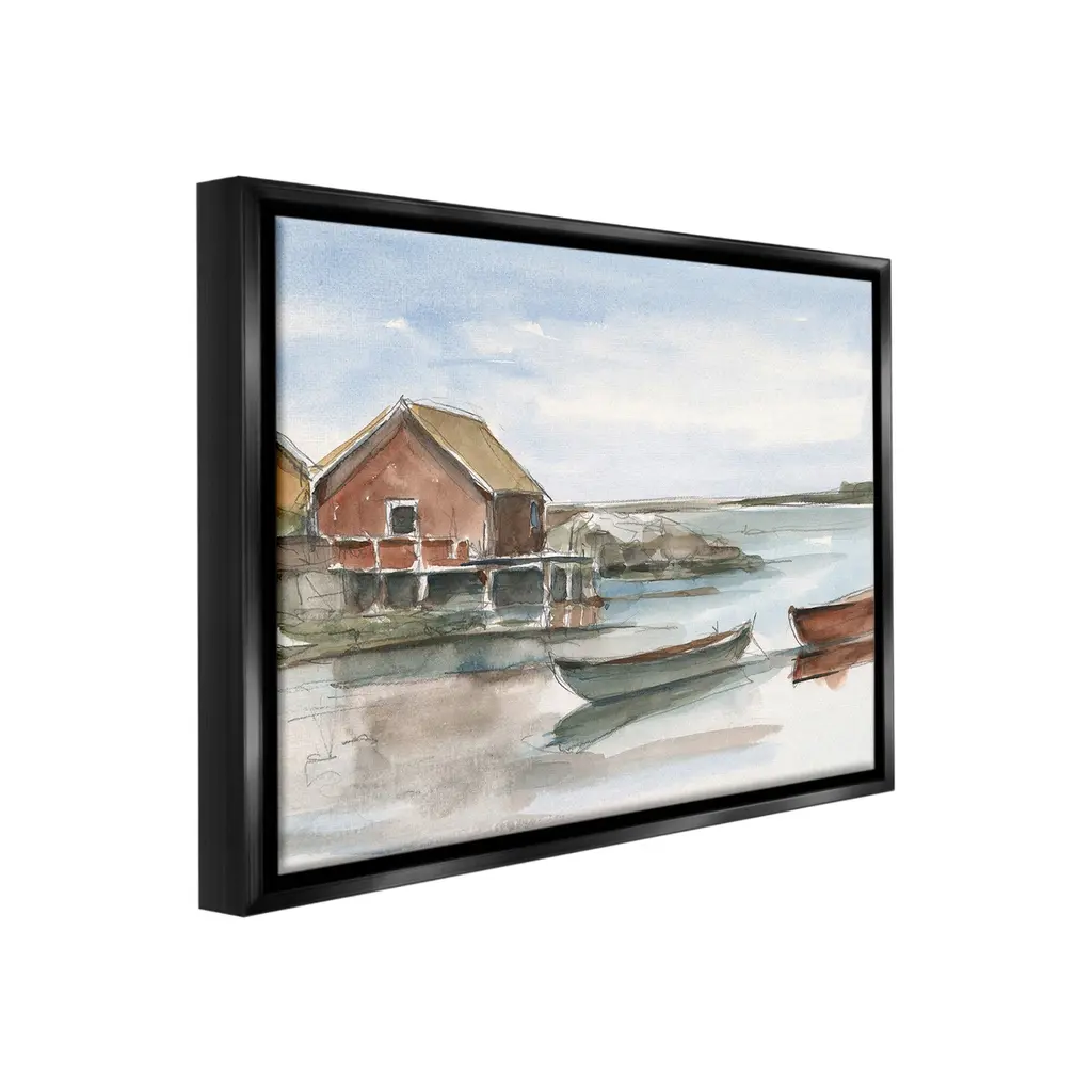 Elevate your home or office to the next level with Stupell Framed Floating Canvas Wall Art. Our premium hand-stretched canvas is mounted securely into a sturdy lightweight frame. The museum-style gap between the wrapped canvas and the box frame gives the illusion of floating artwork. Stupell Wall Art is made in the USA.Features: Dimensions: 21 x 1.7 x 17 Frame, 20 x 1.5 x 16 Canvas ArtFloating Frame Canvas Products are available in sizes 21"x17" and 31"x25". All Floating Frame Canvas Products have a 1.7" Depth.Wall Art is Ready to Hang with Hardware Free Hanging. No Installation required. For Easy Set Up Lean or Layer Artwork on Shelf or Against Wall. Artwork is Permently Fixed into the Frame.Our elevated 1.7" Thick Floating Frame is the perfect complement to our canvas style Wall Art. We use only the highest quality inks in house with industry leading printing solutions. Canvas is hand stretched over a durable wood foundation and then mounted securly into a Modern Box Frame. Made in the USA.Artwork Relates To: Boat, Shack, Water, Waterfront, Dinghy, Watercraft, Lake, Pond, Beach, CoastalDesign by Ethan Harper