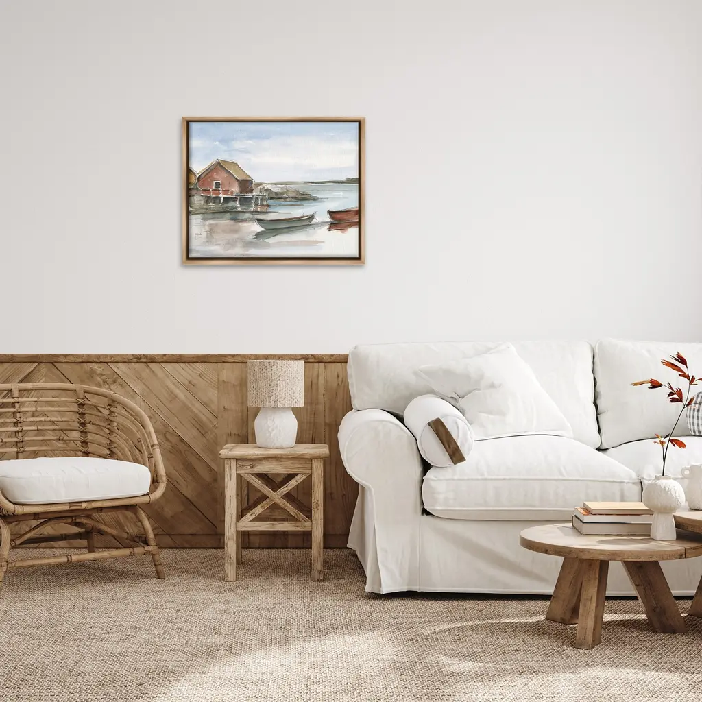 Elevate your home or office to the next level with Stupell Framed Floating Canvas Wall Art. Our premium hand-stretched canvas is mounted securely into a sturdy lightweight frame. The museum-style gap between the wrapped canvas and the box frame gives the illusion of floating artwork. Stupell Wall Art is made in the USA.Features: Dimensions: 21 x 1.7 x 17 Frame, 20 x 1.5 x 16 Canvas ArtFloating Frame Canvas Products are available in sizes 21"x17" and 31"x25". All Floating Frame Canvas Products have a 1.7" Depth.Wall Art is Ready to Hang with Hardware Free Hanging. No Installation required. For Easy Set Up Lean or Layer Artwork on Shelf or Against Wall. Artwork is Permently Fixed into the Frame.Our elevated 1.7" Thick Floating Frame is the perfect complement to our canvas style Wall Art. We use only the highest quality inks in house with industry leading printing solutions. Canvas is hand stretched over a durable wood foundation and then mounted securly into a Modern Box Frame. Made in the USA.Artwork Relates To: Boat, Shack, Water, Waterfront, Dinghy, Watercraft, Lake, Pond, Beach, CoastalDesign by Ethan Harper