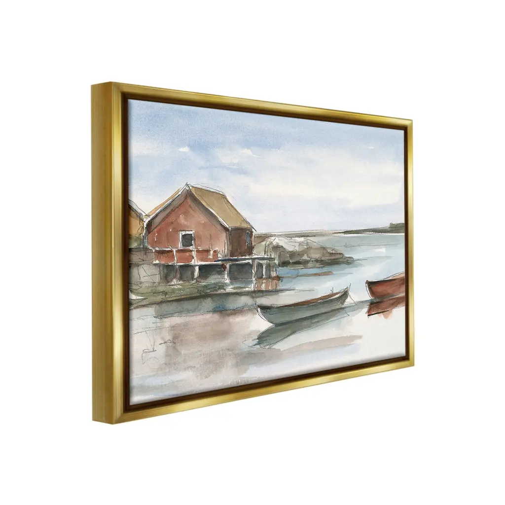 Elevate your home or office to the next level with Stupell Framed Floating Canvas Wall Art. Our premium hand-stretched canvas is mounted securely into a sturdy lightweight frame. The museum-style gap between the wrapped canvas and the box frame gives the illusion of floating artwork. Stupell Wall Art is made in the USA.Features: Dimensions: 21 x 1.7 x 17 Frame, 20 x 1.5 x 16 Canvas ArtFloating Frame Canvas Products are available in sizes 21"x17" and 31"x25". All Floating Frame Canvas Products have a 1.7" Depth.Wall Art is Ready to Hang with Hardware Free Hanging. No Installation required. For Easy Set Up Lean or Layer Artwork on Shelf or Against Wall. Artwork is Permently Fixed into the Frame.Our elevated 1.7" Thick Floating Frame is the perfect complement to our canvas style Wall Art. We use only the highest quality inks in house with industry leading printing solutions. Canvas is hand stretched over a durable wood foundation and then mounted securly into a Modern Box Frame. Made in the USA.Artwork Relates To: Boat, Shack, Water, Waterfront, Dinghy, Watercraft, Lake, Pond, Beach, CoastalDesign by Ethan Harper
