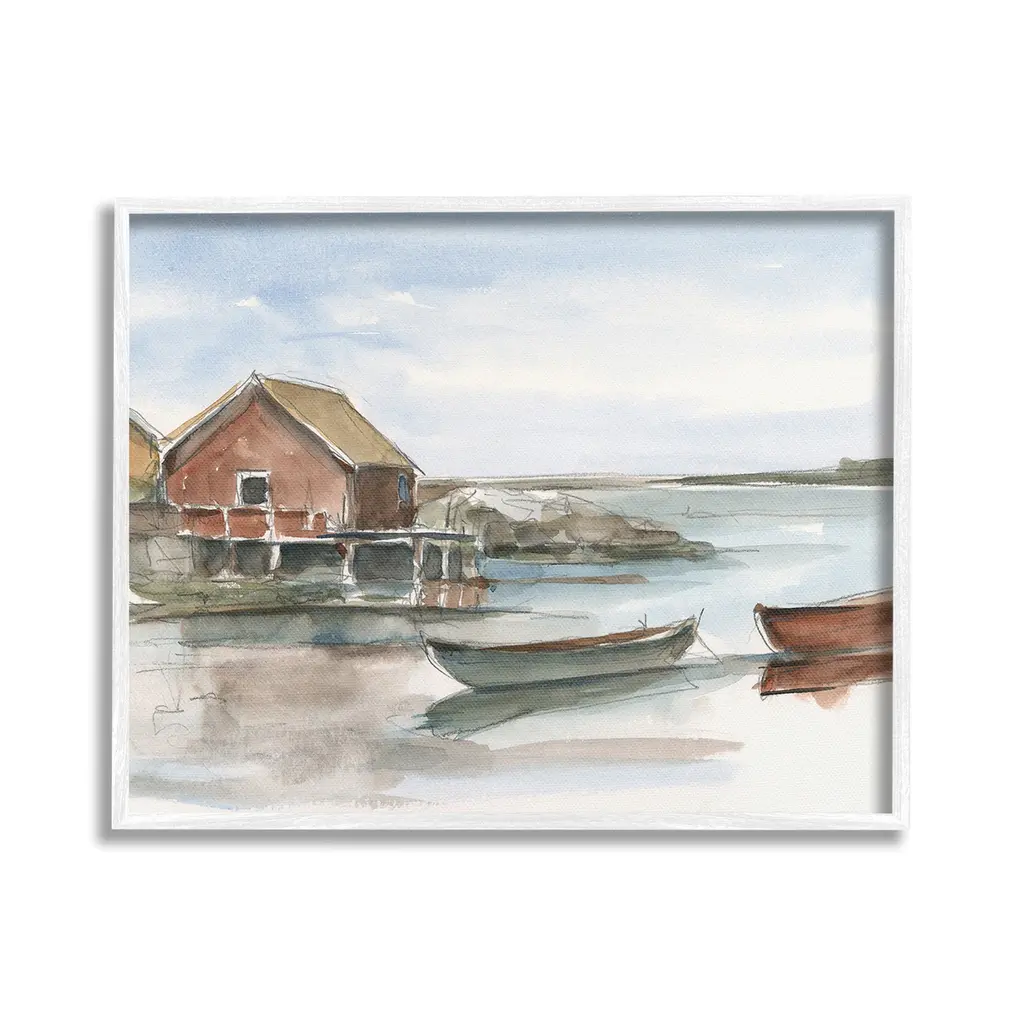 Add dimension to any room with our textured Framed Giclee Artwork. Our framed artwork is securely mounted into a 1.5-inch thick wood grain frame and ready to hang. Frames are available in three alluring styles: black, gray farmhouse and white. In addition, you should check out our oversized options if you want a statement piece. Stupell Wall Art is made in the USA.Features: Dimensions: 14 x 1.5 x 11 FramedFramed Giclee Products are available in the sizes 14"x11", 20"x16" or 30"x24". All Framed Giclee Products have a 1.5" Depth. Wall Art is Ready to Hang with Hardware Free Hanging. No installation required. For Easy Set Up Lean or Layer Artwork on Shelf or Against Wall.Our giclée prints are carefully mounted on a durable MDF backing, and then perfectly finished in a 1.5 inch thick woodgrain frame. Mounted frame colors include black, gray farmhouse and white. Made In USA.Artwork Relates To: Boat, Shack, Water, Waterfront, Dinghy, Watercraft, Lake, Pond, Beach, CoastalDesign by Ethan Harper