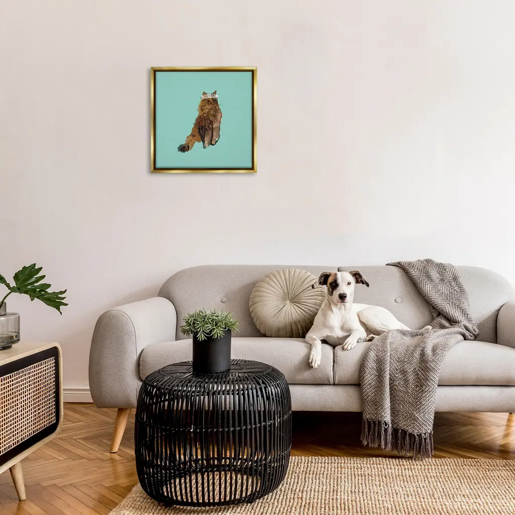 Elevate your home or office to the next level with Stupell Framed Floating Canvas Wall Art. Our premium hand-stretched canvas is mounted securely into a sturdy lightweight frame. The museum-style gap between the wrapped canvas and the box frame gives the illusion of floating artwork. Stupell Wall Art is made in the USA.Features: Dimensions: 18 x 1.7 x 18 Frame, 17 x 1.5 x 17 Canvas ArtFloating Frame Canvas Products are available in sizes 18"x18" and 25"x25". All Floating Frame Canvas Products have a 1.7" Depth.Wall Art is Ready to Hang with Hardware Free Hanging. No Installation required. For Easy Set Up Lean or Layer Artwork on Shelf or Against Wall. Artwork is Permently Fixed into the Frame.Our elevated 1.7" Thick Floating Frame is the perfect complement to our canvas style Wall Art. We use only the highest quality inks in house with industry leading printing solutions. Canvas is hand stretched over a durable wood foundation and then mounted securly into a Modern Box Frame. Made in the USA.Artwork Relates To: Animal, Mammal, Pet, Tiara, Crown, Princess, CatDesign by Amelia Noyes
