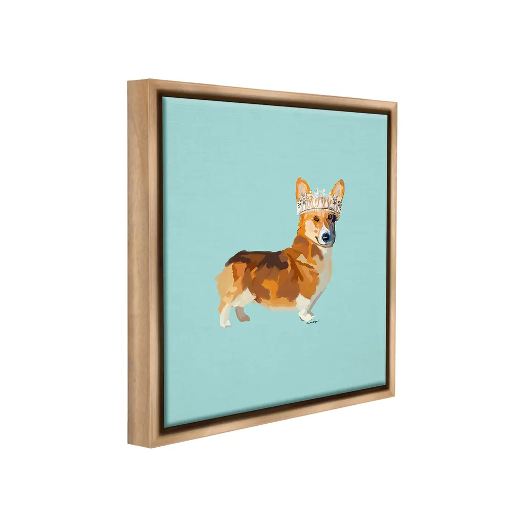 Elevate your home or office to the next level with Stupell Framed Floating Canvas Wall Art. Our premium hand-stretched canvas is mounted securely into a sturdy lightweight frame. The museum-style gap between the wrapped canvas and the box frame gives the illusion of floating artwork. Stupell Wall Art is made in the USA.Features: Dimensions: 18 x 1.7 x 18 Frame, 17 x 1.5 x 17 Canvas ArtFloating Frame Canvas Products are available in sizes 18"x18" and 25"x25". All Floating Frame Canvas Products have a 1.7" Depth.Wall Art is Ready to Hang with Hardware Free Hanging. No Installation required. For Easy Set Up Lean or Layer Artwork on Shelf or Against Wall. Artwork is Permently Fixed into the Frame.Our elevated 1.7" Thick Floating Frame is the perfect complement to our canvas style Wall Art. We use only the highest quality inks in house with industry leading printing solutions. Canvas is hand stretched over a durable wood foundation and then mounted securly into a Modern Box Frame. Made in the USA.Artwork Relates To: Animal, Canine, Dog, Mammal, Pet, Puppy, Tiara, Crown, Princess, CorgiDesign by Amelia Noyes