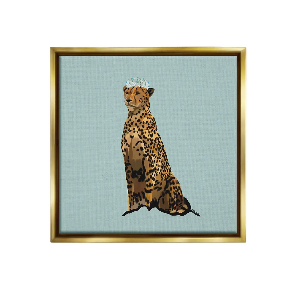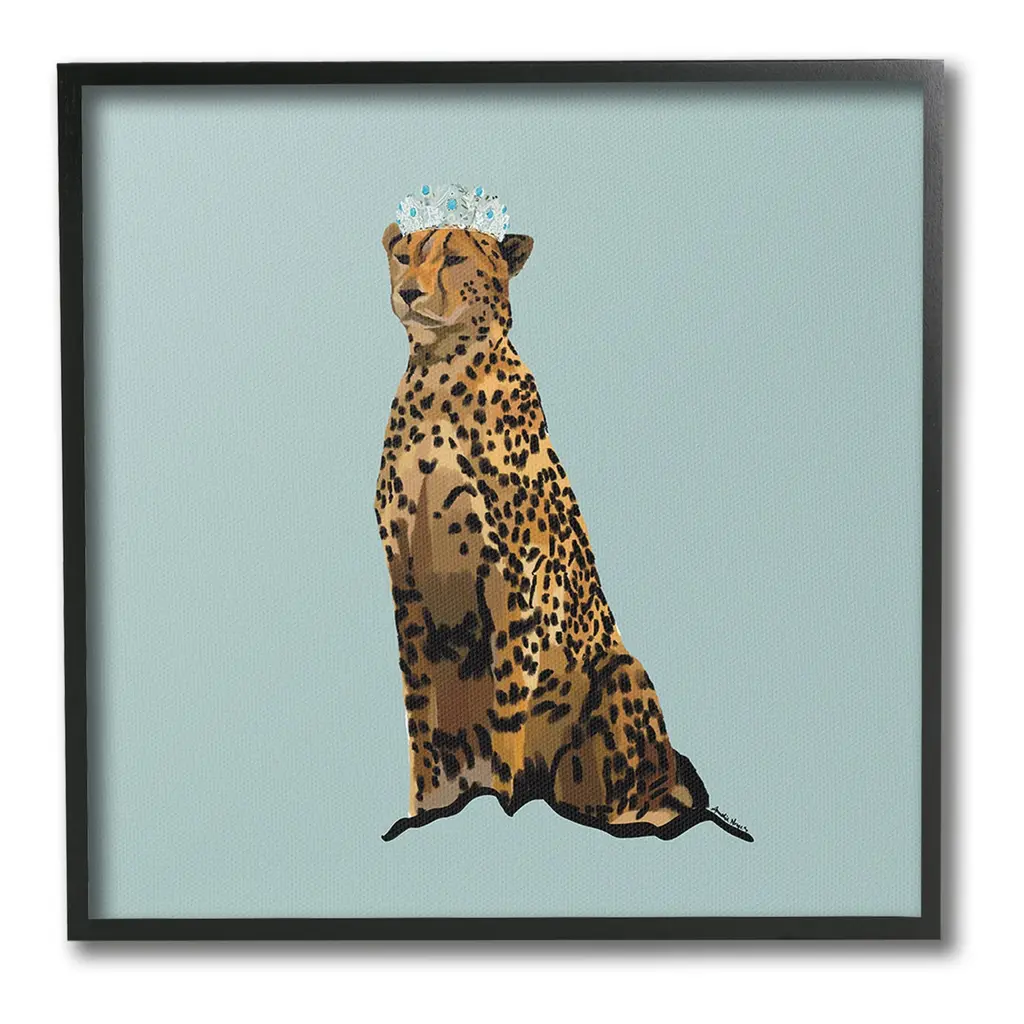 Elevate your home or office to the next level with Stupell Framed Floating Canvas Wall Art. Our premium hand-stretched canvas is mounted securely into a sturdy lightweight frame. The museum-style gap between the wrapped canvas and the box frame gives the illusion of floating artwork. Stupell Wall Art is made in the USA.Features: Dimensions: 21 x 1.7 x 17 Frame, 20 x 1.5 x 16 Canvas ArtFloating Frame Canvas Products are available in sizes 21"x17" and 31"x25". All Floating Frame Canvas Products have a 1.7" Depth.Wall Art is Ready to Hang with Hardware Free Hanging. No Installation required. For Easy Set Up Lean or Layer Artwork on Shelf or Against Wall. Artwork is Permently Fixed into the Frame.Our elevated 1.7" Thick Floating Frame is the perfect complement to our canvas style Wall Art. We use only the highest quality inks in house with industry leading printing solutions. Canvas is hand stretched over a durable wood foundation and then mounted securly into a Modern Box Frame. Made in the USA.Artwork Relates To: Animal, Cheetah, Mammal, Wildlife, Leopard, Crown, TiaraDesign by Amelia Noyes