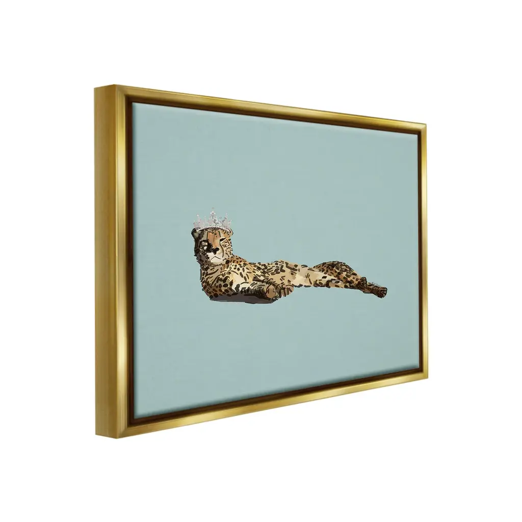 Elevate your home or office to the next level with Stupell Framed Floating Canvas Wall Art. Our premium hand-stretched canvas is mounted securely into a sturdy lightweight frame. The museum-style gap between the wrapped canvas and the box frame gives the illusion of floating artwork. Stupell Wall Art is made in the USA.Features: Dimensions: 21 x 1.7 x 17 Frame, 20 x 1.5 x 16 Canvas ArtFloating Frame Canvas Products are available in sizes 21"x17" and 31"x25". All Floating Frame Canvas Products have a 1.7" Depth.Wall Art is Ready to Hang with Hardware Free Hanging. No Installation required. For Easy Set Up Lean or Layer Artwork on Shelf or Against Wall. Artwork is Permently Fixed into the Frame.Our elevated 1.7" Thick Floating Frame is the perfect complement to our canvas style Wall Art. We use only the highest quality inks in house with industry leading printing solutions. Canvas is hand stretched over a durable wood foundation and then mounted securly into a Modern Box Frame. Made in the USA.Artwork Relates To: Animal, Cheetah, Mammal, Wildlife, Leopard, Crown, TiaraDesign by Amelia Noyes