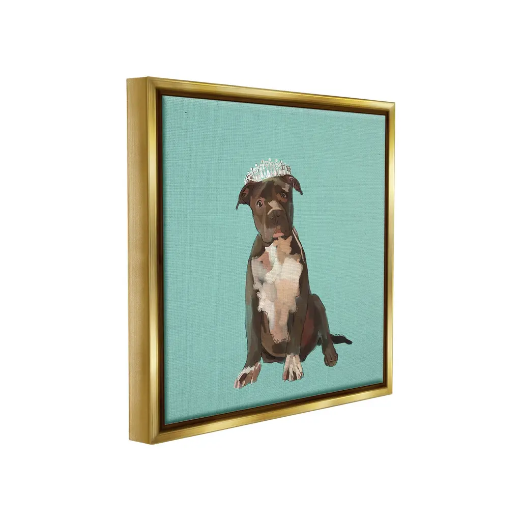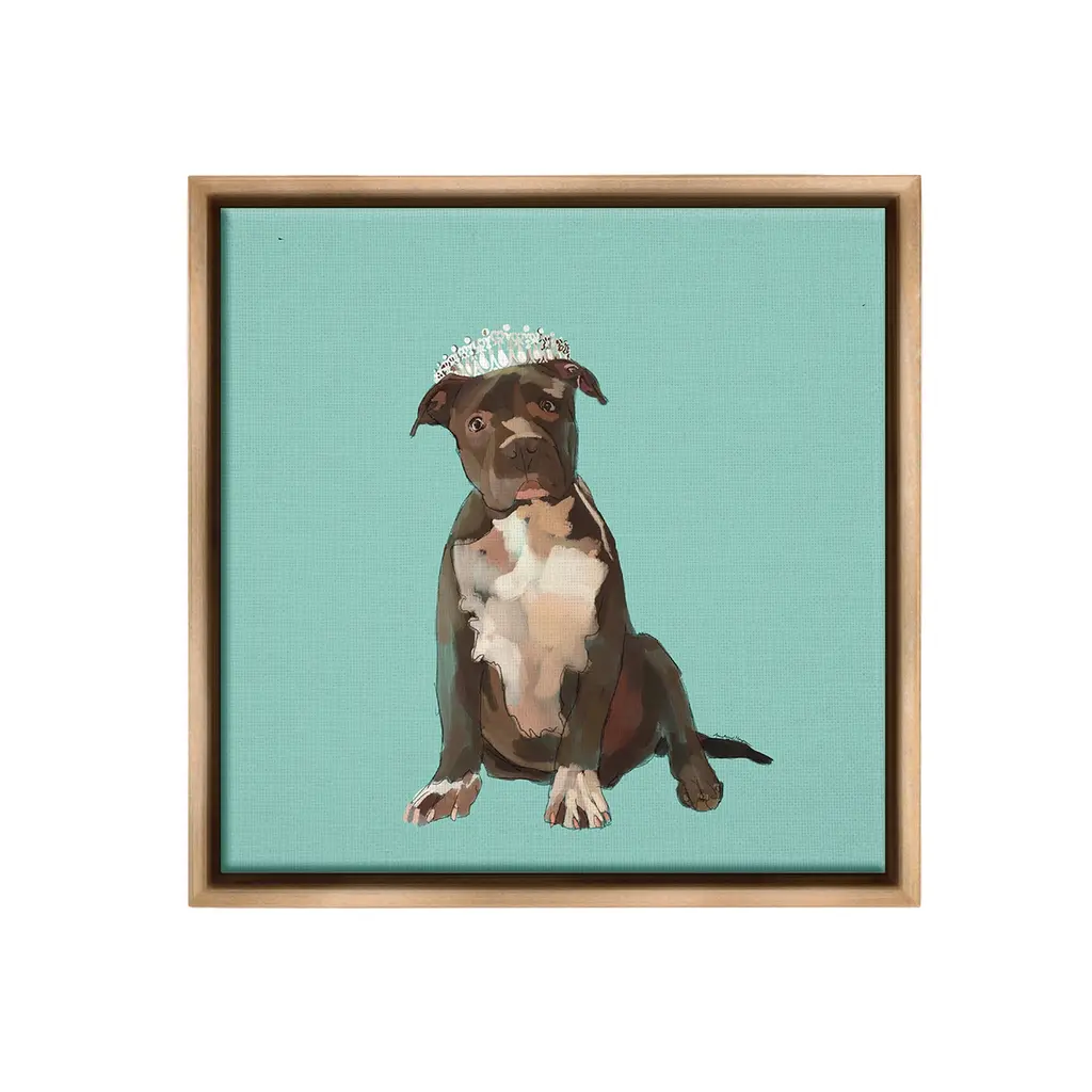Elevate your home or office to the next level with Stupell Framed Floating Canvas Wall Art. Our premium hand-stretched canvas is mounted securely into a sturdy lightweight frame. The museum-style gap between the wrapped canvas and the box frame gives the illusion of floating artwork. Stupell Wall Art is made in the USA.Features: Dimensions: 18 x 1.7 x 18 Frame, 17 x 1.5 x 17 Canvas ArtFloating Frame Canvas Products are available in sizes 18"x18" and 25"x25". All Floating Frame Canvas Products have a 1.7" Depth.Wall Art is Ready to Hang with Hardware Free Hanging. No Installation required. For Easy Set Up Lean or Layer Artwork on Shelf or Against Wall. Artwork is Permently Fixed into the Frame.Our elevated 1.7" Thick Floating Frame is the perfect complement to our canvas style Wall Art. We use only the highest quality inks in house with industry leading printing solutions. Canvas is hand stretched over a durable wood foundation and then mounted securly into a Modern Box Frame. Made in the USA.Artwork Relates To: Animal, Canine, Dog, Mammal, Pet, Puppy, Tiara, Crown, Princess, Pit BullDesign by Amelia Noyes