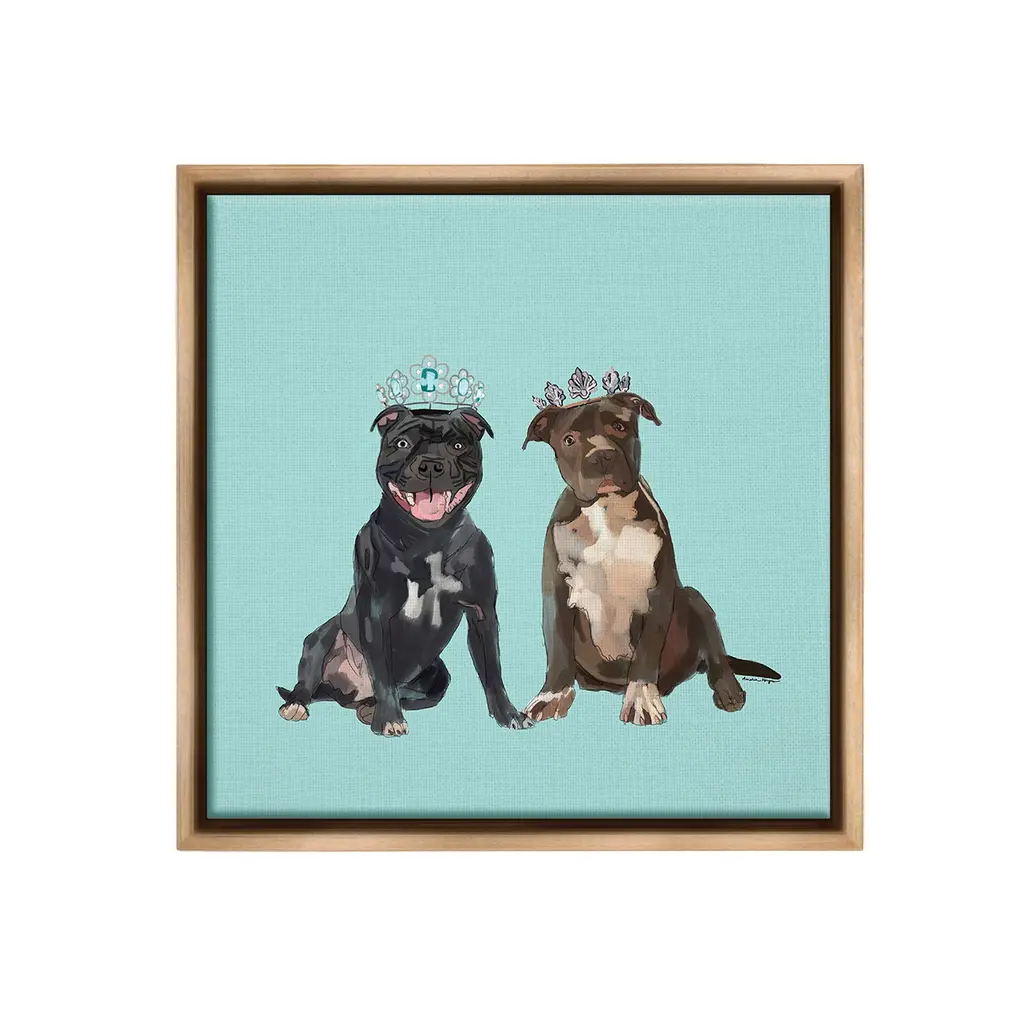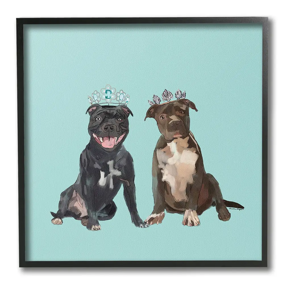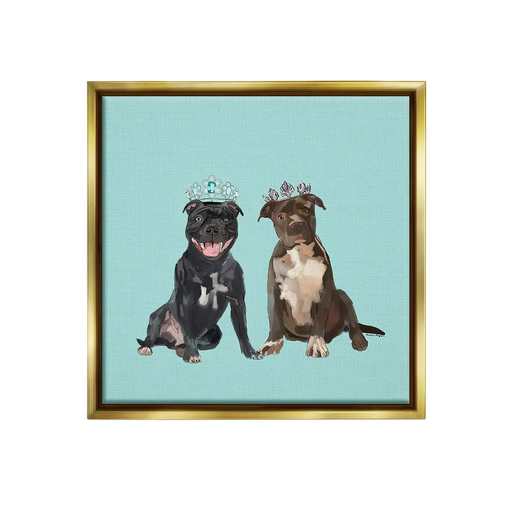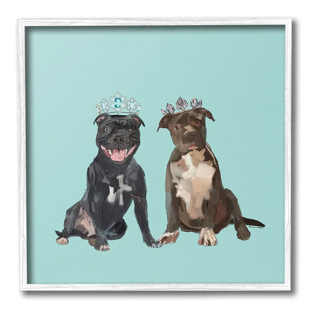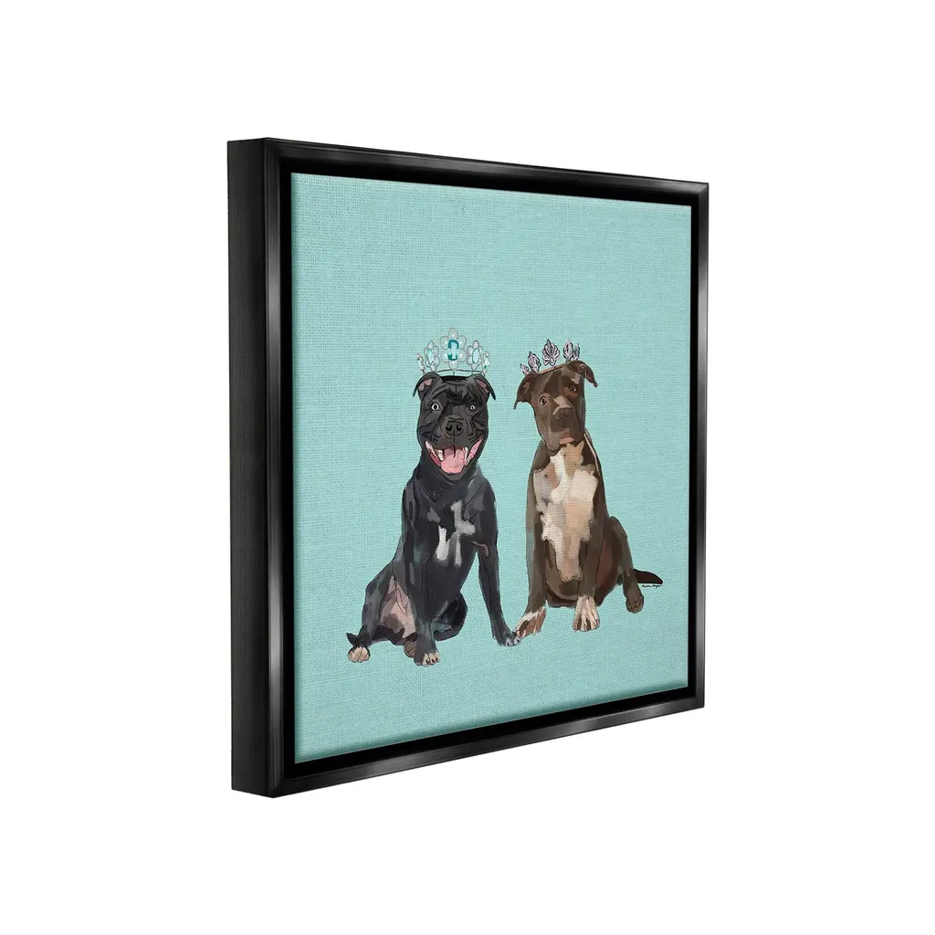 Elevate your home or office to the next level with Stupell Framed Floating Canvas Wall Art. Our premium hand-stretched canvas is mounted securely into a sturdy lightweight frame. The museum-style gap between the wrapped canvas and the box frame gives the illusion of floating artwork. Stupell Wall Art is made in the USA.Features: Dimensions: 18 x 1.7 x 18 Frame, 17 x 1.5 x 17 Canvas ArtFloating Frame Canvas Products are available in sizes 18"x18" and 25"x25". All Floating Frame Canvas Products have a 1.7" Depth.Wall Art is Ready to Hang with Hardware Free Hanging. No Installation required. For Easy Set Up Lean or Layer Artwork on Shelf or Against Wall. Artwork is Permently Fixed into the Frame.Our elevated 1.7" Thick Floating Frame is the perfect complement to our canvas style Wall Art. We use only the highest quality inks in house with industry leading printing solutions. Canvas is hand stretched over a durable wood foundation and then mounted securly into a Modern Box Frame. Made in the USA.Artwork Relates To: Animal, Canine, Dog, Mammal, Pet, Puppy, Tiara, Crown, Princess, Pit BullDesign by Amelia Noyes