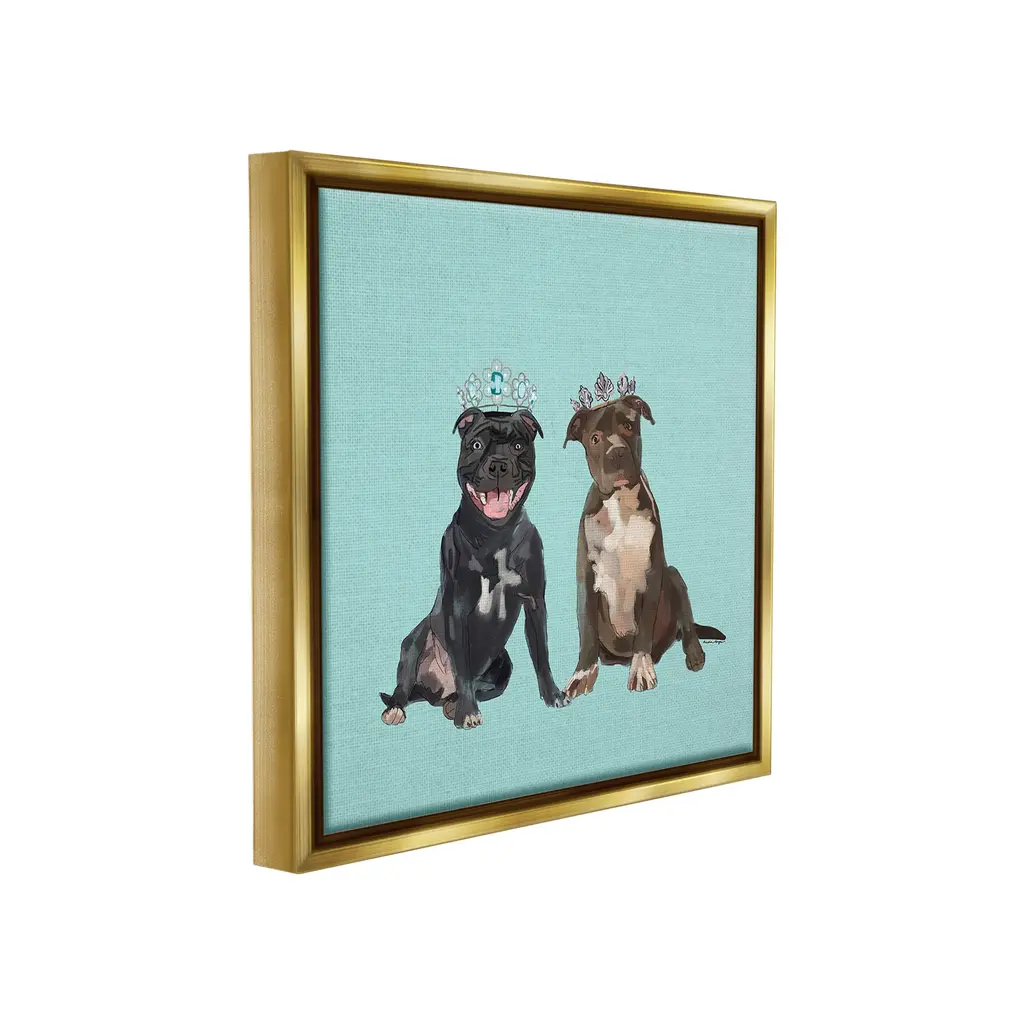 Stupell Royal Pit Bulls With Crowns Framed Floater Canvas Wall Art Design By Amelia Noyes - 25 X 25 - Gold