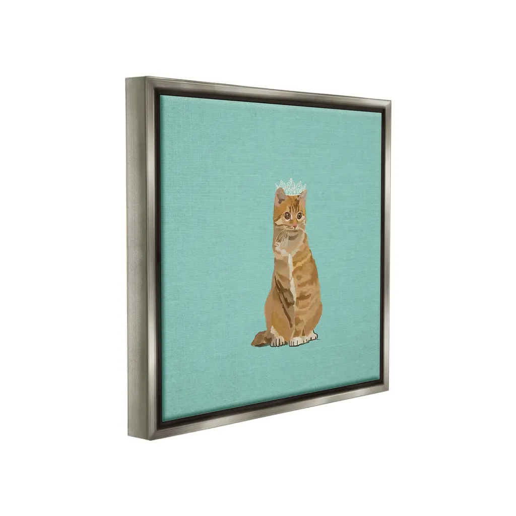Elevate your home or office to the next level with Stupell Framed Floating Canvas Wall Art. Our premium hand-stretched canvas is mounted securely into a sturdy lightweight frame. The museum-style gap between the wrapped canvas and the box frame gives the illusion of floating artwork. Stupell Wall Art is made in the USA.Features: Dimensions: 18 x 1.7 x 18 Frame, 17 x 1.5 x 17 Canvas ArtFloating Frame Canvas Products are available in sizes 18"x18" and 25"x25". All Floating Frame Canvas Products have a 1.7" Depth.Wall Art is Ready to Hang with Hardware Free Hanging. No Installation required. For Easy Set Up Lean or Layer Artwork on Shelf or Against Wall. Artwork is Permently Fixed into the Frame.Our elevated 1.7" Thick Floating Frame is the perfect complement to our canvas style Wall Art. We use only the highest quality inks in house with industry leading printing solutions. Canvas is hand stretched over a durable wood foundation and then mounted securly into a Modern Box Frame. Made in the USA.Artwork Relates To: Animal, Mammal, Pet, Tiara, Crown, Princess, Cat, TabbyDesign by Amelia Noyes