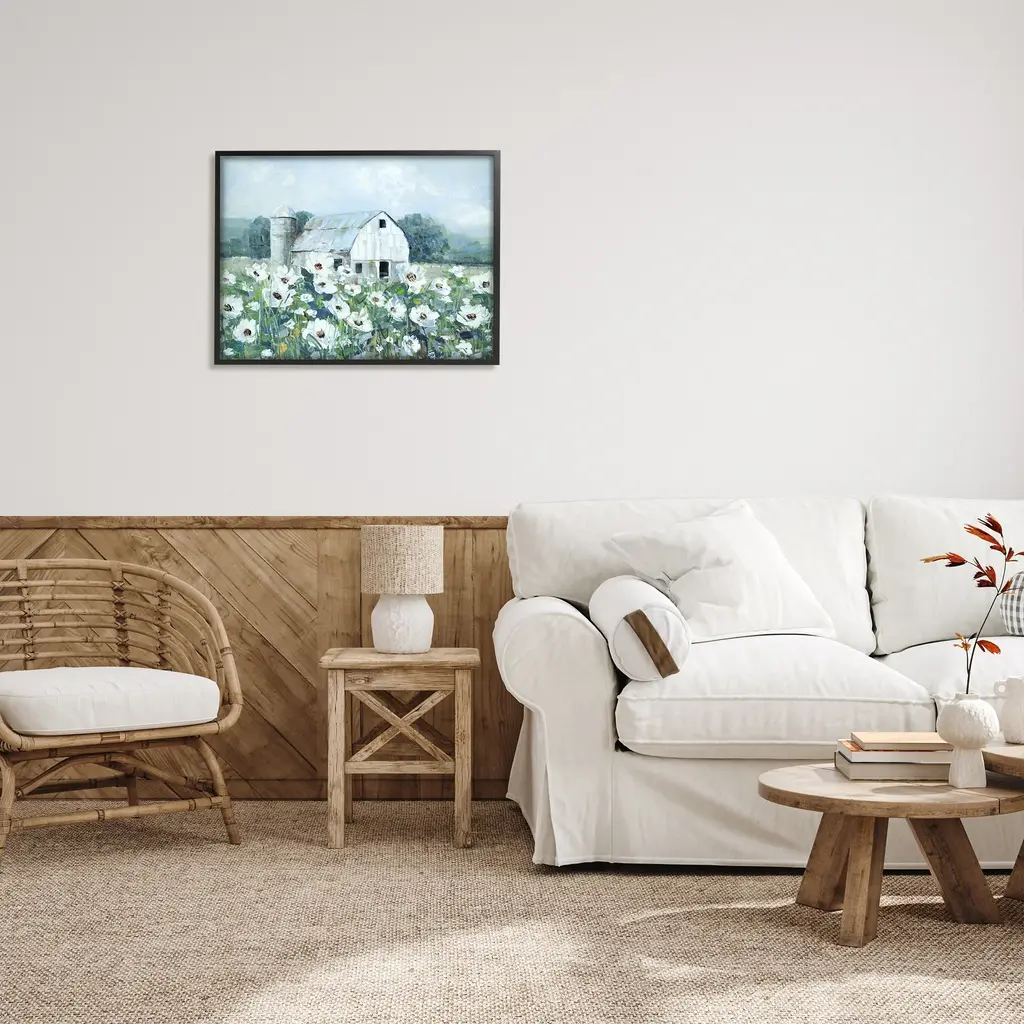 Our Framed Giclee Wall Art adds a touch of class to any space in your home or office. Frames are available in three alluring styles: black, gray farmhouse and white. Our textured artwork will add more depth and dimension to any space. Each piece is mounted with a 1.5 inch thick wood grain frame that is ready to hang! Looking for a statement piece? We have oversized artwork available.Features: Wall Art is Ready to Hang - No Installation or Hardware Needed. For Easy Set Up Lean or Layer Artwork on Shelf or Against Wall.Our giclee prints are carefully mounted on a durable MDF backing, and then perfectly finished in a 1.5 inch thick woodgrain frame. Mounted frame colors include black, gray farmhouse and white. Made In USA.Artwork Relates To: Outdoors; Building; Plant; Flower; Blossom; Painting; Countryside; Barn; Farm; RuralDesign by Sally Swatland