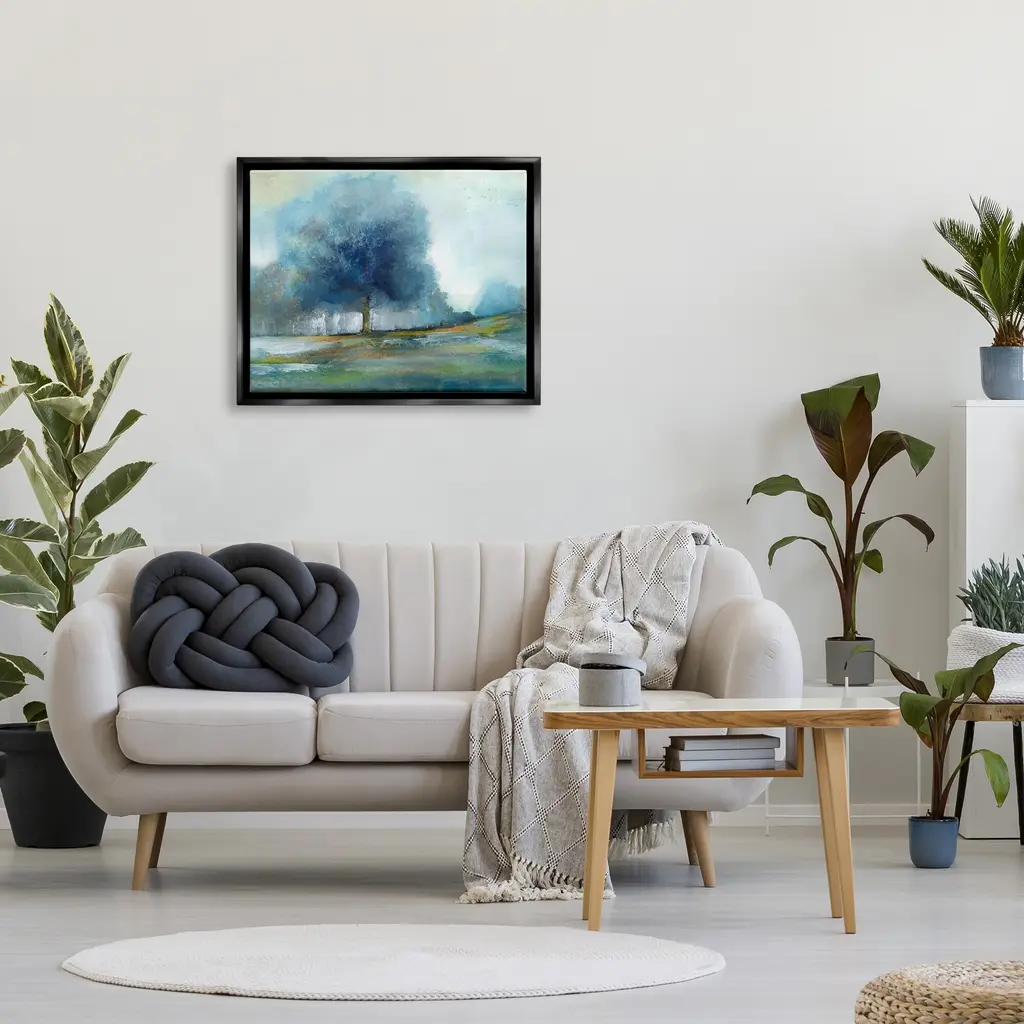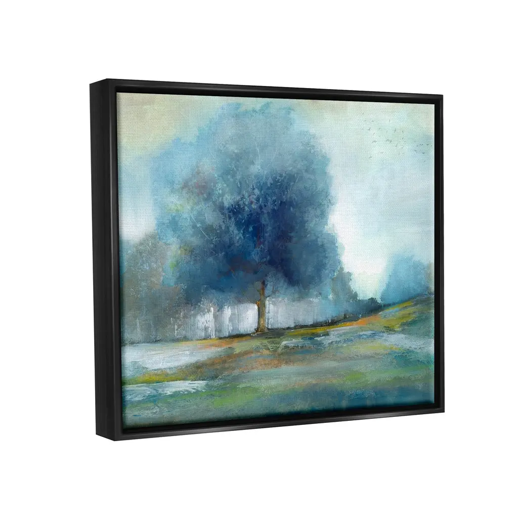 Stupell Rural Blue Tree Abstract Painting Framed Floater Canvas Wall Art By Nan - 30 X 24 - Black
