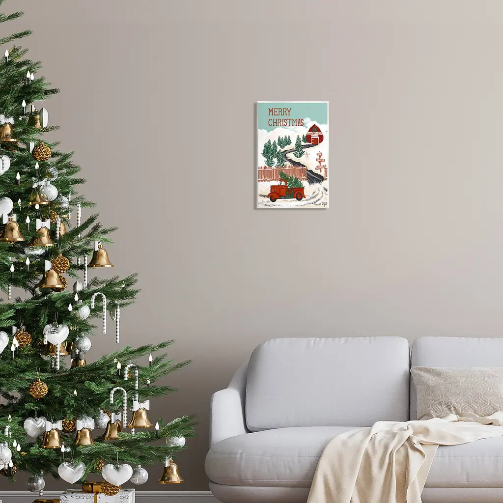 Our wall plaques start as high-quality lithograph prints mounted on durable 0.5-inch thick MDF wood. Each piece is hand finished and comes with a fresh layer of white foil on the sides to give it a crisp, clean look. Plaques arrive ready to hang without installation and come with removable plastic corners to keep them from damage in transit. Stupell Wall Art is made in the USA.Features: Dimensions: 10 x 0.5 x 15 InchesWall Plaque Sizes Include Standard: 10 x 0.5 x 15 Oversized: 13 x 0.5 x 19Wall Art is Ready to Hang with Hardware Free Hanging. No installation required. For Easy Set Up Lean or Layer Artwork on Shelf or Against Wall.All of our wall plaques start off as high quality lithograph prints that are then mounted on durable 0.5 inch thick MDF wood. Each piece is hand finished and comes with a fresh layer of foil on the sides to give it a crisp clean look. Made In USA.Artwork Relates To: Tree, Transportation, Vehicle, Truck, Rural, Farmhouse, Winter, Snow, Holiday, Seasonal, Merry Christmas, Joy to the WorldDesign by Hannah Byatt