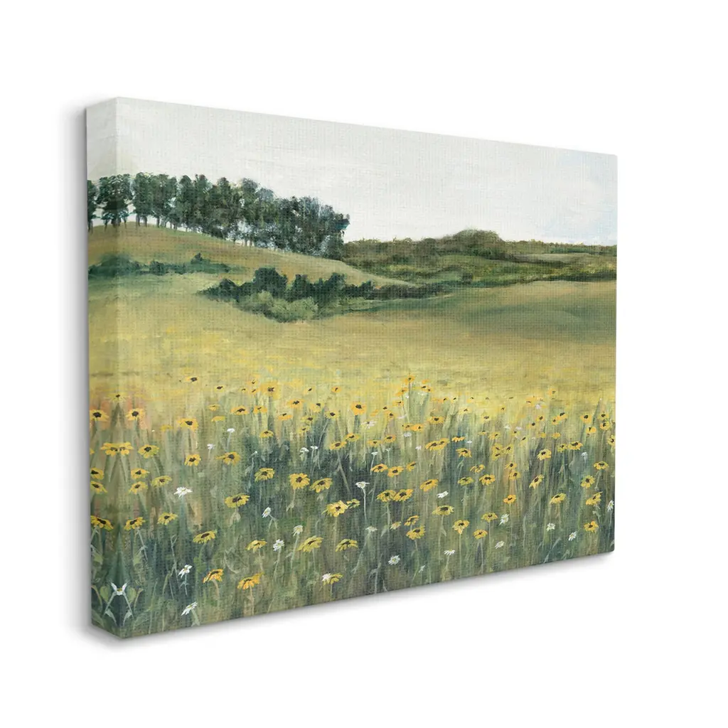We create our stretched canvas to the highest standards. Using only the highest quality inks and canvas on Mimaki printers, we hand-cut and stretch each piece over a 1.5-inch thick wooden frame for hanging. As a result, the art comes ready to hang on the sturdy ledge with no installation required. Stupell Wall Art is made in the USA.Features: Dimensions: 20 x 1.5 x 16 InchesStretched Canvas Sizes Include Standard: 20 x 1.5 x 16 Large: 30 x 1.5 x 20 X-Large: 40 x 1.5 x 30 Oversized: 48 x 1.5 x 36Wall Art is Ready to Hang with Hardware Free Hanging. No installation required. For Easy Set Up Lean or Layer Artwork on Shelf or Against Wall.Our stretched canvas is created with the highest standards. We use only the highest quality inks and canvas on our in house Mimaki printers, and then hand cut and stretch each piece over a 1.5 inch thick wooden frame for hanging. Made In USA.Artwork Relates To: Field, Nature, Countryside, Meadow, Rural, Painting, Grass, Plant, Flower, Landscape, Daisy, Black Eyed SusanDesign by Michael Willett