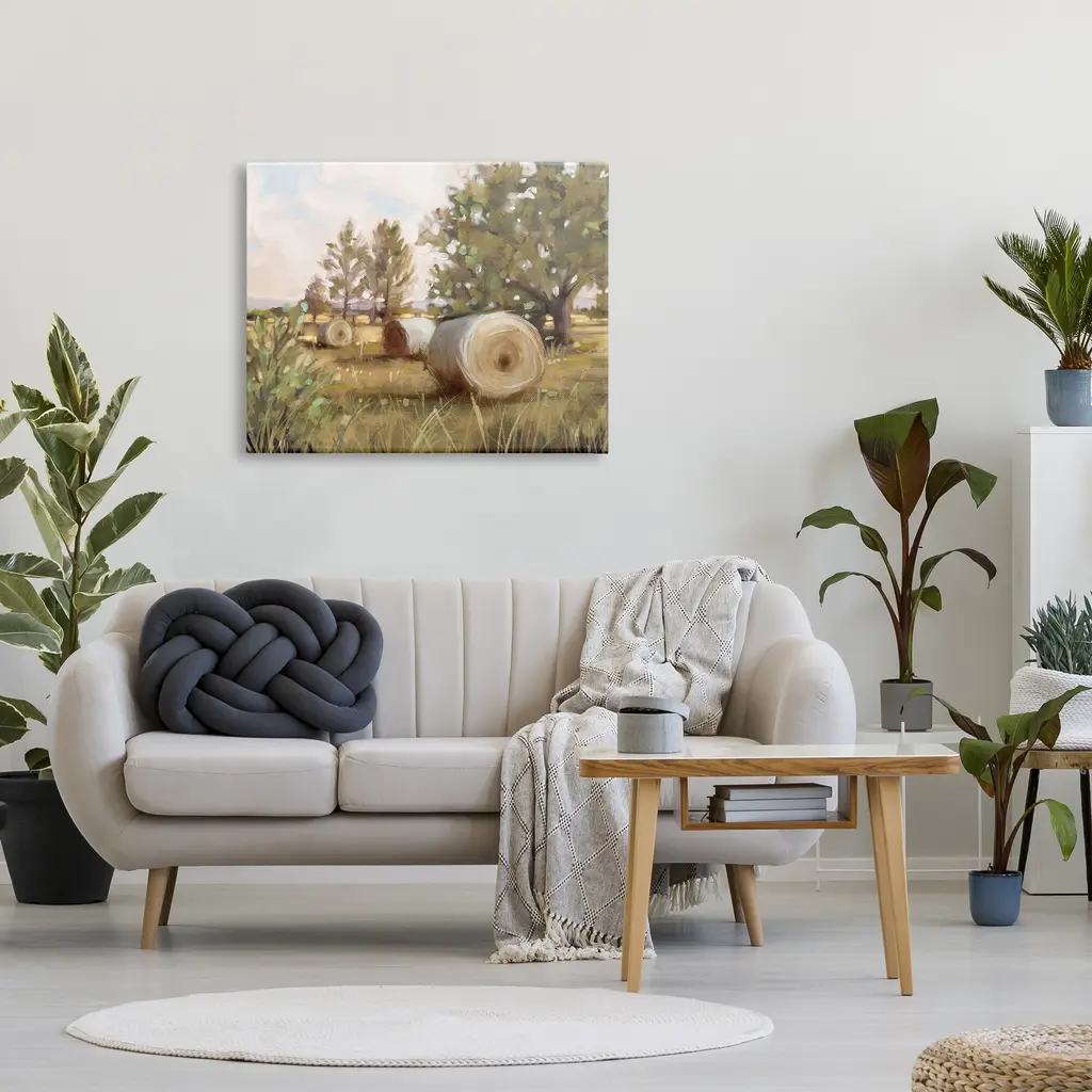 We create our stretched canvas to the highest standards. Using only the highest quality inks and canvas on Mimaki printers, we hand-cut and stretch each piece over a 1.5-inch thick wooden frame for hanging. As a result, the art comes ready to hang on the sturdy ledge with no installation required. Stupell Wall Art is made in the USA.Features: Dimensions: 20 x 1.5 x 16 InchesStretched Canvas Sizes Include Standard: 20 x 1.5 x 16 Large: 30 x 1.5 x 20 X-Large: 40 x 1.5 x 30 Oversized: 48 x 1.5 x 36Wall Art is Ready to Hang - No Installation or Hardware Needed. For Easy Set Up Lean or Layer Artwork on Shelf or Against Wall.Our stretched canvas is created with the highest standards. We use only the highest quality inks and canvas on our in house Mimaki printers, and then hand cut and stretch each piece over a 1.5 inch thick wooden frame for hanging. Made In USA.Artwork Relates To: Painting, Countryside, Farm, Harvest, Nature, Outdoors, Rural, Agriculture, Field, TreeDesign by Nina Blue
