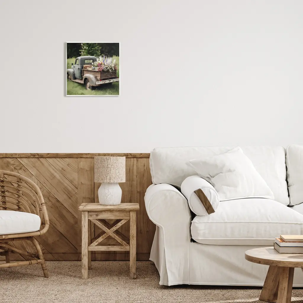 Our wall plaques start as high-quality lithograph prints mounted on durable 0.5-inch thick MDF wood. Each piece is hand finished and comes with a fresh layer of white foil on the sides to give it a crisp, clean look. Plaques arrive ready to hang without installation and come with removable plastic corners to keep them from damage in transit. Stupell Wall Art is made in the USA.Features: Dimensions: 12 x 0.5 x 12 InchesWall Art is Ready to Hang with Hardware Free Hanging. No installation required. For Easy Set Up Lean or Layer Artwork on Shelf or Against Wall.All of our wall plaques start off as high quality lithograph prints that are then mounted on durable 0.5 inch thick MDF wood. Each piece is hand finished and comes with a fresh layer of foil on the sides to give it a crisp clean look. Made In USA.Artwork Relates To: Pickup Truck, Transportation, Truck, Vehicle, Plant, Flower, Flower Arrangement, Vintage, CountryDesign by LSR Design Studio