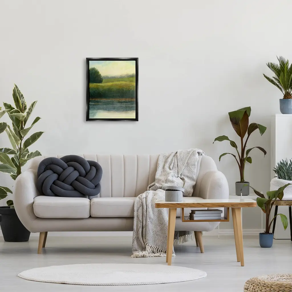 Elevate your home or office to the next level with Stupell Framed Floating Canvas Wall Art. Our premium hand stretched canvas is mounted securly into a sturdy lightweight frame. The museum style gap between wrapped canvas and box frame gives the illusion of floating artwork. Features: Dimensions: 17 x 1.7 x 21 Frame, 16 x 1.5 x 20 Canvas ArtFloating Frame Sizes Include Standard: 17 x 1.7 x 21 Oversized: 25 x 1.7 x 31Wall Art is Ready to Hang - No Installation or Hardware Needed. For Easy Set Up Lean or Layer Artwork on Shelf or Against Wall.Our elevated 1.7" Thick Floating Frame is the perfect complement to our canvas style Wall Art. We use only the highest quality inks in house with industry leading printing solutions. Canvas is hand stretched over a durable wood foundation and then mounted securly into a Modern Box Frame. Made in the USA.Artwork Relates To: Outdoors, Nature, Water, Lake, Pond, Field, Grassland, RuralDesign by Suzanne Nicoll