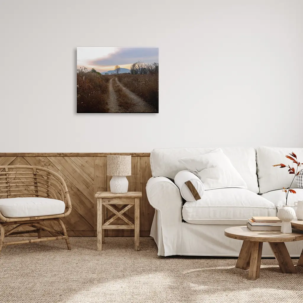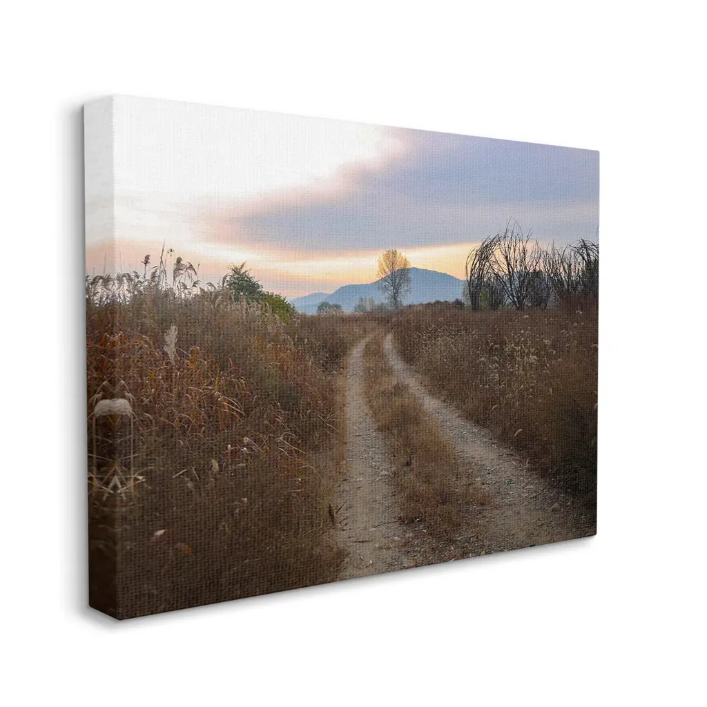 We create our stretched canvas to the highest standards. Using only the highest quality inks and canvas on Mimaki printers, we hand-cut and stretch each piece over a 1.5-inch thick wooden frame for hanging. As a result, the art comes ready to hang on the sturdy ledge with no installation required. Stupell Wall Art is made in the USA.Features: Dimensions: 20 x 1.5 x 16 InchesStretched Canvas Sizes Include Standard: 20 x 1.5 x 16 Large: 30 x 1.5 x 20 X-Large: 40 x 1.5 x 30 Oversized: 48 x 1.5 x 36Wall Art is Ready to Hang with Hardware Free Hanging. No installation required. For Easy Set Up Lean or Layer Artwork on Shelf or Against Wall.Our stretched canvas is created with the highest standards. We use only the highest quality inks and canvas on our in house Mimaki printers, and then hand cut and stretch each piece over a 1.5 inch thick wooden frame for hanging. Made In USA.Artwork Relates To: Path, Nature, Trail, Road, Sky, Plant, Vegetation, Grass, Reed, Horizon, Field, GrasslandDesign by Lil' Rue