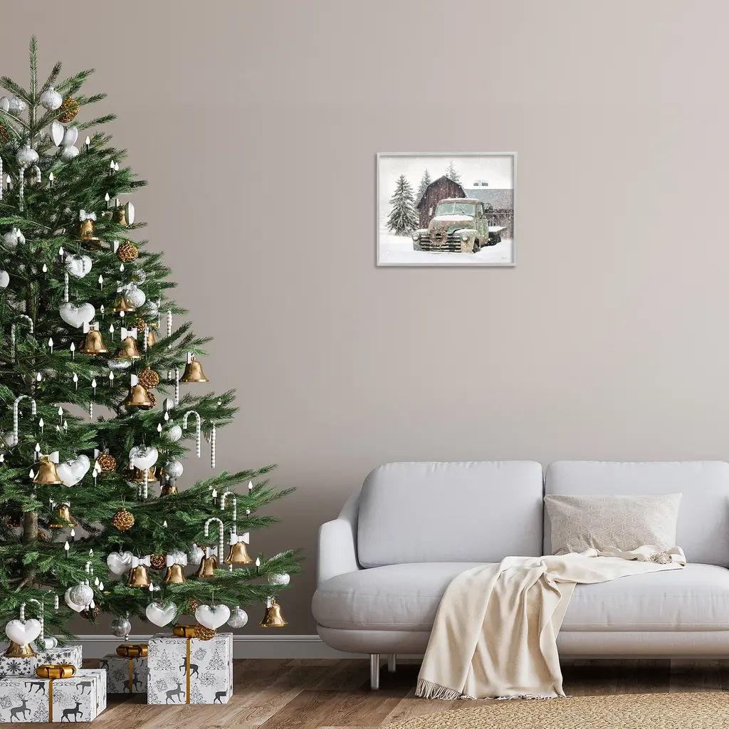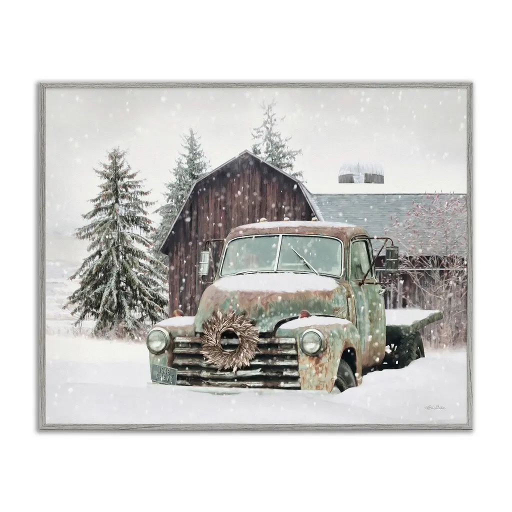 Stupell Rural Vintage Truck & Barn Snowy Winter Landscape Framed Wall Art - Green - 20 X 16 - Grey