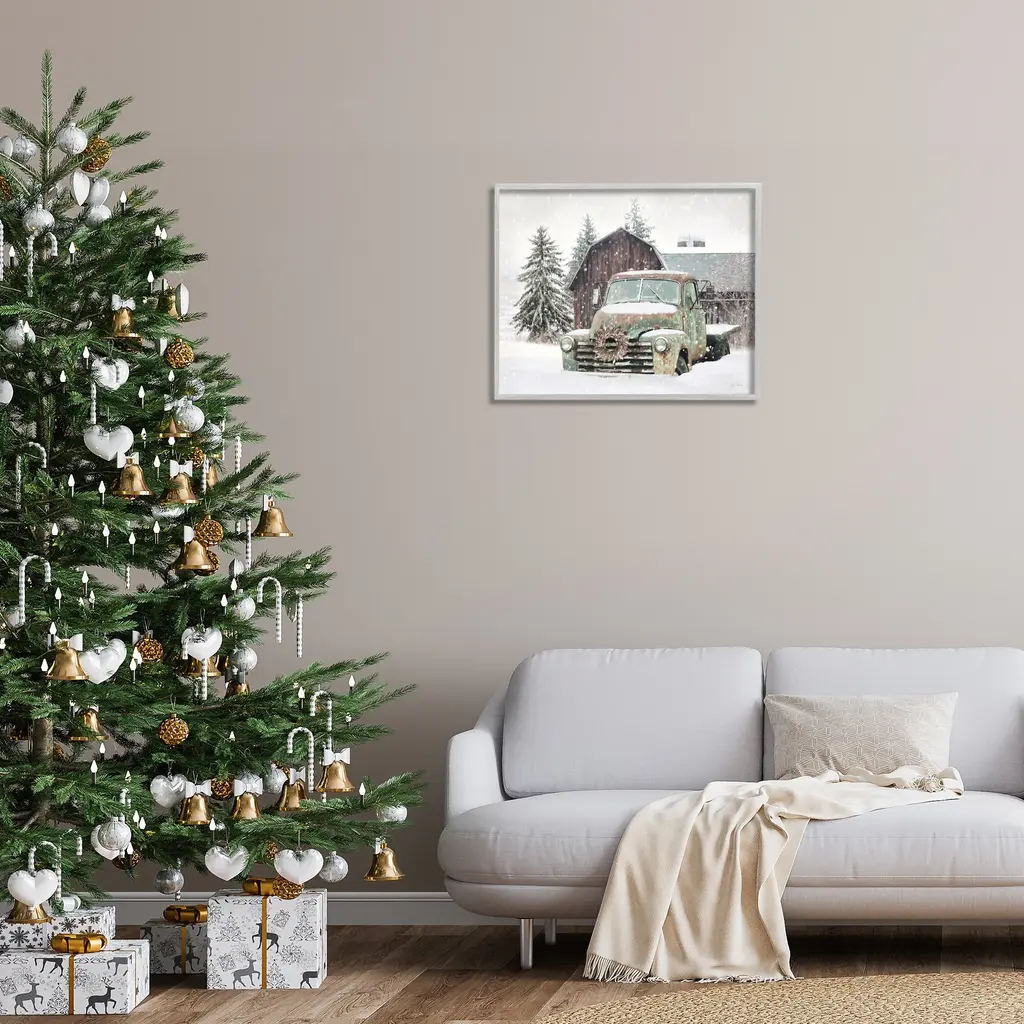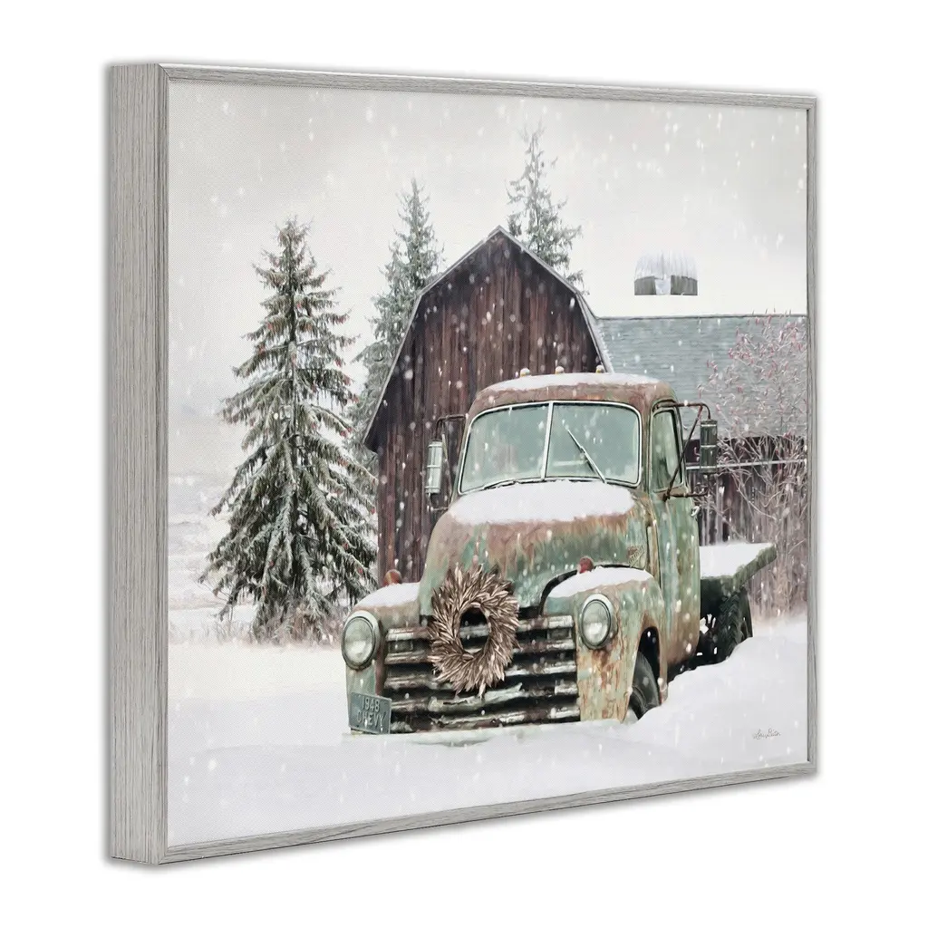 Stupell Rural Vintage Truck & Barn Snowy Winter Landscape Framed Wall Art - Green - 30 X 24 - Grey