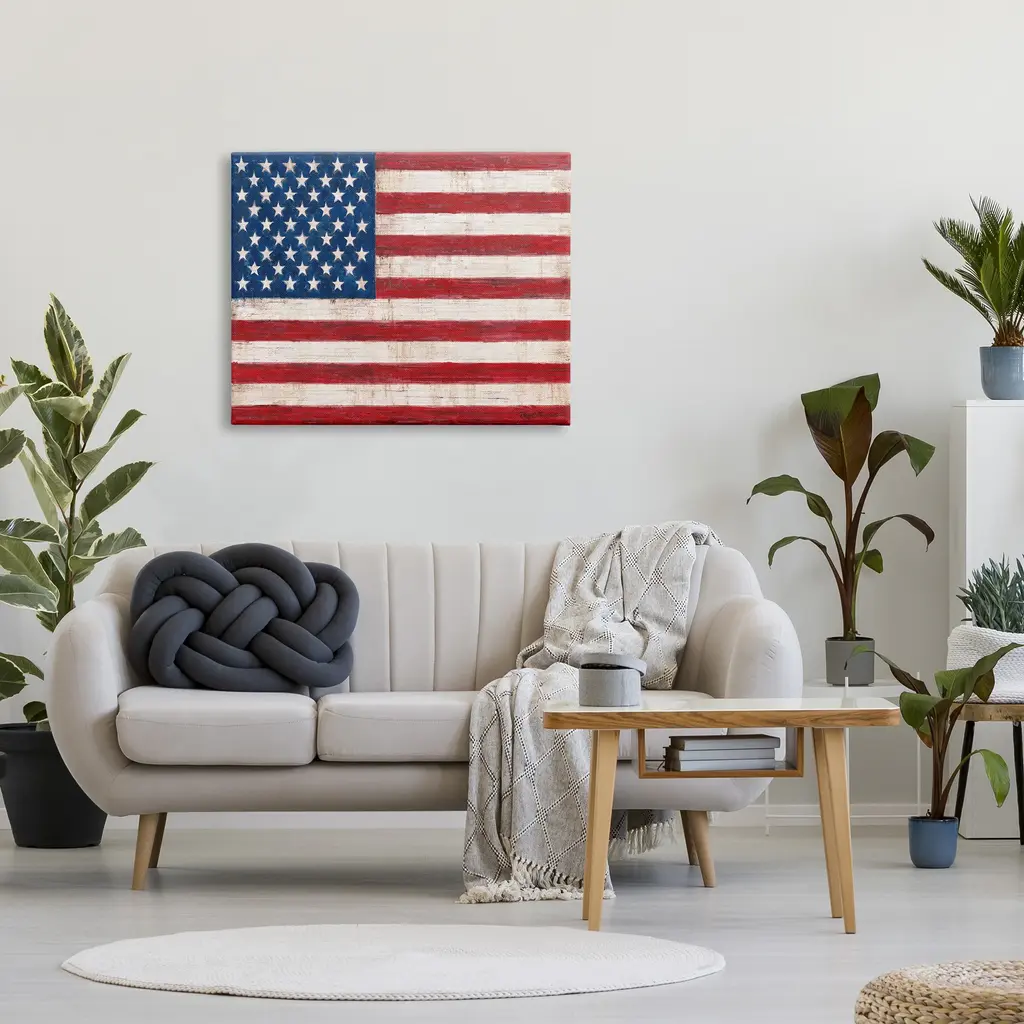Stupell Rustic American Flag Red White Blue Distressed Pattern Canvas Wall Art - 40 X 30