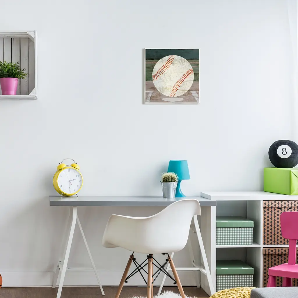 Our wall plaques start as high-quality lithograph prints mounted on durable 0.5-inch thick MDF wood. Each piece is hand finished and comes with a fresh layer of white foil on the sides to give it a crisp, clean look. Plaques arrive ready to hang without installation and come with removable plastic corners to keep them from damage in transit. Wall Art is made in the USA.Features: Dimensions: 12 x 0.5 x 12 InchesWall Art is Ready to Hang with Hardware Free Hanging. No installation required. For Easy Set Up Lean or Layer Artwork on Shelf or Against Wall.All of our wall plaques start off as high quality lithograph prints that are then mounted on durable 0.5 inch thick MDF wood. Each piece is hand finished and comes with a fresh layer of foil on the sides to give it a crisp clean look. Made In USA.Artwork Relates To: Ball, Baseball, Sports, Rustic, AbstractDesign by Kim Allen