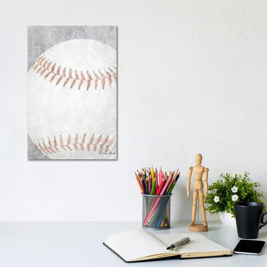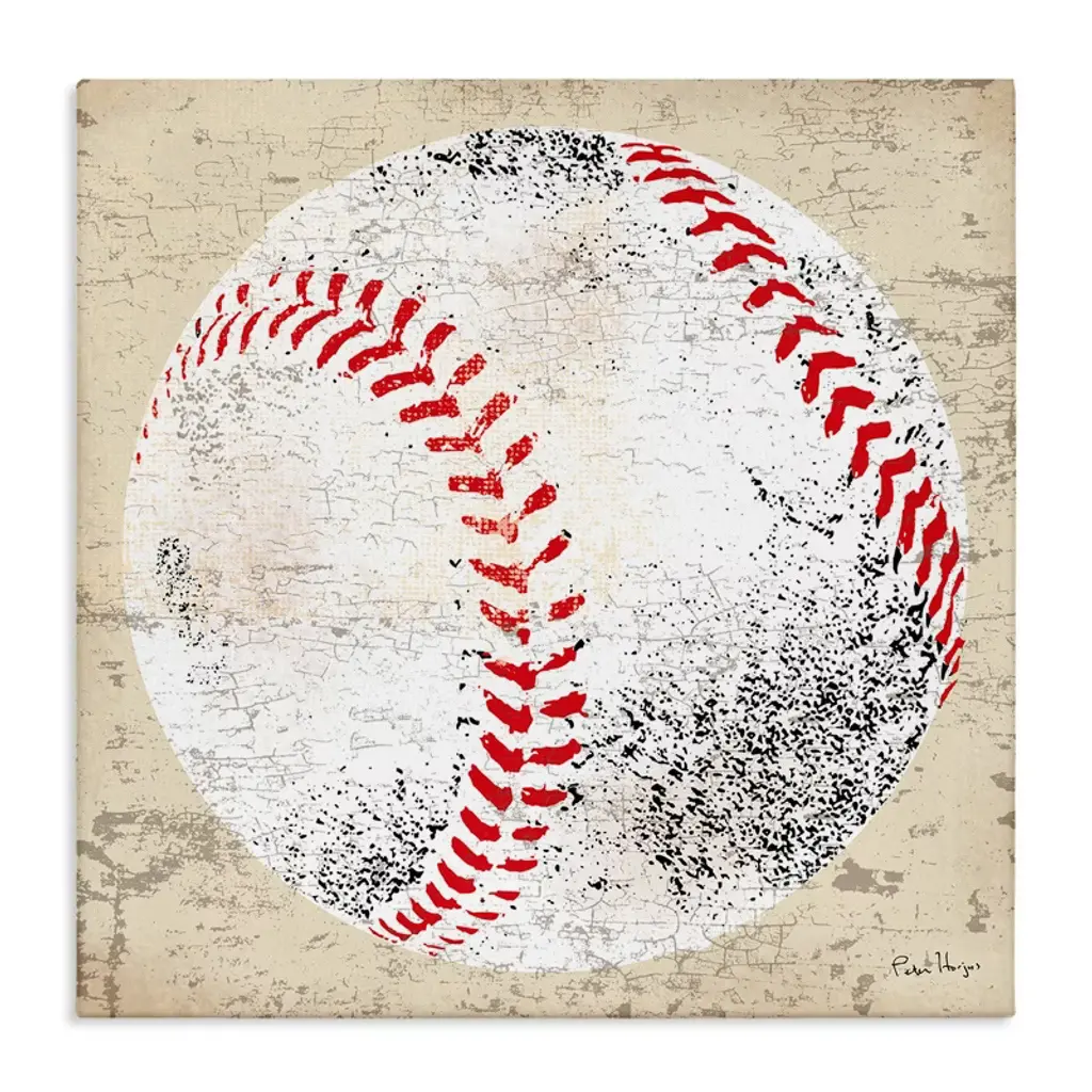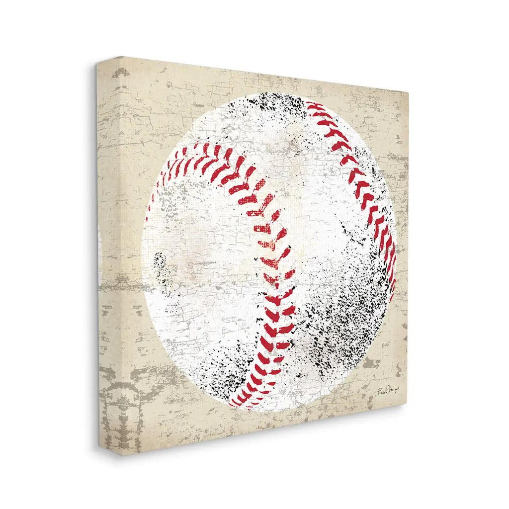 We create our stretched canvas to the highest standards. Using only the highest quality inks and canvas on Mimaki printers, we hand-cut and stretch each piece over a 1.5-inch thick wooden frame for hanging. As a result, the art comes ready to hang on the sturdy ledge with no installation required. Stupell Wall Art is made in the USA.Features: Dimensions: 17 x 1.5 x 17 InchesStretched Canvas Sizes Include Standard: 17 x 1.5 x 17 Large: 24 x 1.5 x 24 X-Large: 30 x 1.5 x 30 Oversized: 36 x 1.5 x 36Wall Art is Ready to Hang with Hardware Free Hanging. No installation required. For Easy Set Up Lean or Layer Artwork on Shelf or Against Wall.Our stretched canvas is created with the highest standards. We use only the highest quality inks and canvas on our in house Mimaki printers, and then hand cut and stretch each piece over a 1.5 inch thick wooden frame for hanging. Made In USA.Artwork Relates To: Ball, Sport, Baseball, RusticDesign by Peter Horjus