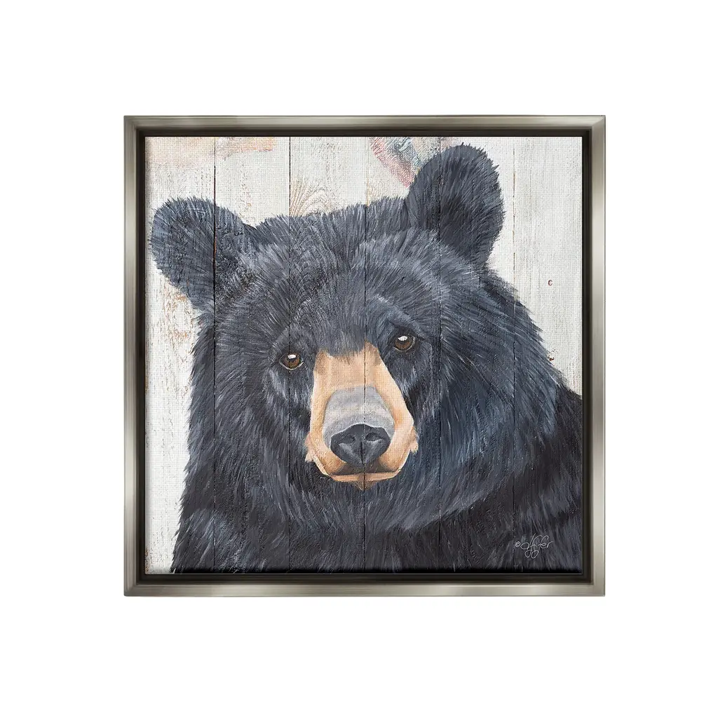 Elevate your home or office to the next level with Stupell Framed Floating Canvas Wall Art. Our premium hand-stretched canvas is mounted securely into a sturdy lightweight frame. The museum-style gap between the wrapped canvas and the box frame gives the illusion of floating artwork. Stupell Wall Art is made in the USA.Features: Dimensions: 18 x 1.7 x 18 Frame, 17 x 1.5 x 17 Canvas ArtFloating Frame Canvas Products are available in sizes 18"x18" and 25"x25". All Floating Frame Canvas Products have a 1.7" Depth.Wall Art is Ready to Hang with Hardware Free Hanging. No Installation required. For Easy Set Up Lean or Layer Artwork on Shelf or Against Wall. Artwork is Permently Fixed into the Frame.Our elevated 1.7" Thick Floating Frame is the perfect complement to our canvas style Wall Art. We use only the highest quality inks in house with industry leading printing solutions. Canvas is hand stretched over a durable wood foundation and then mounted securly into a Modern Box Frame. Made in the USA.Artwork Relates To: Animal, Bear, Mammal, Wildlife, Rustic, PortraitDesign by Diane Fifer