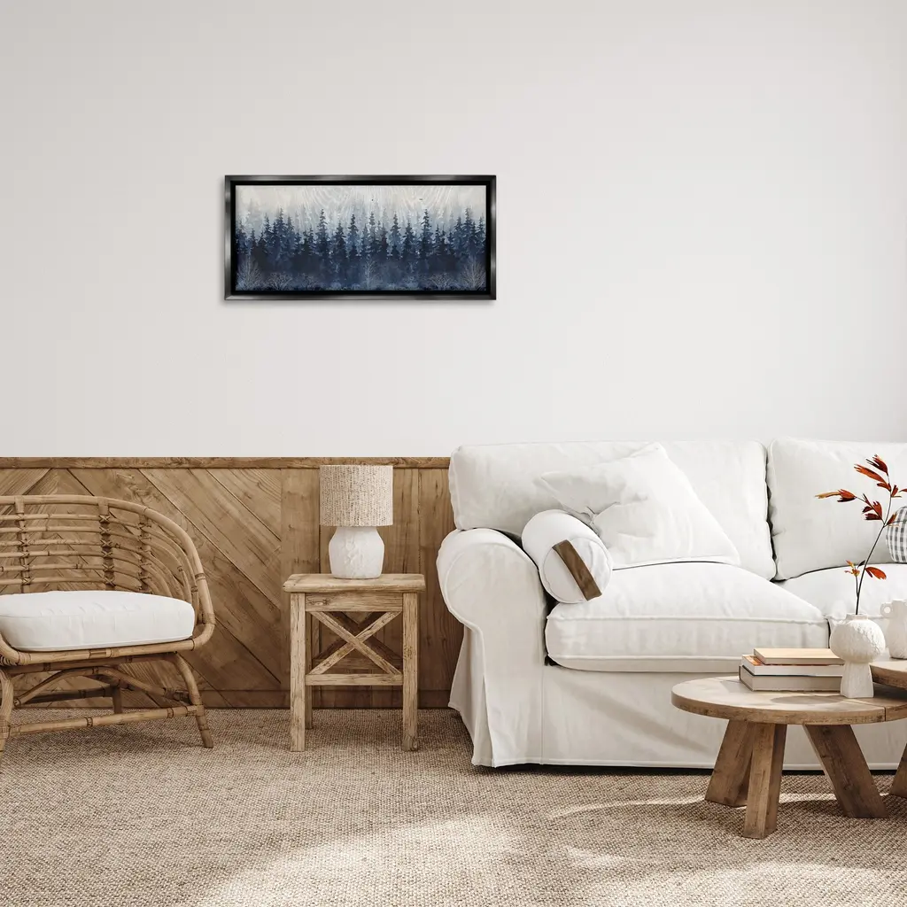 Stupell Rustic Blue Forest Tree Line Framed Floater Canvas Wall Art Design By Carol Robinson - 25 X 11 - Black