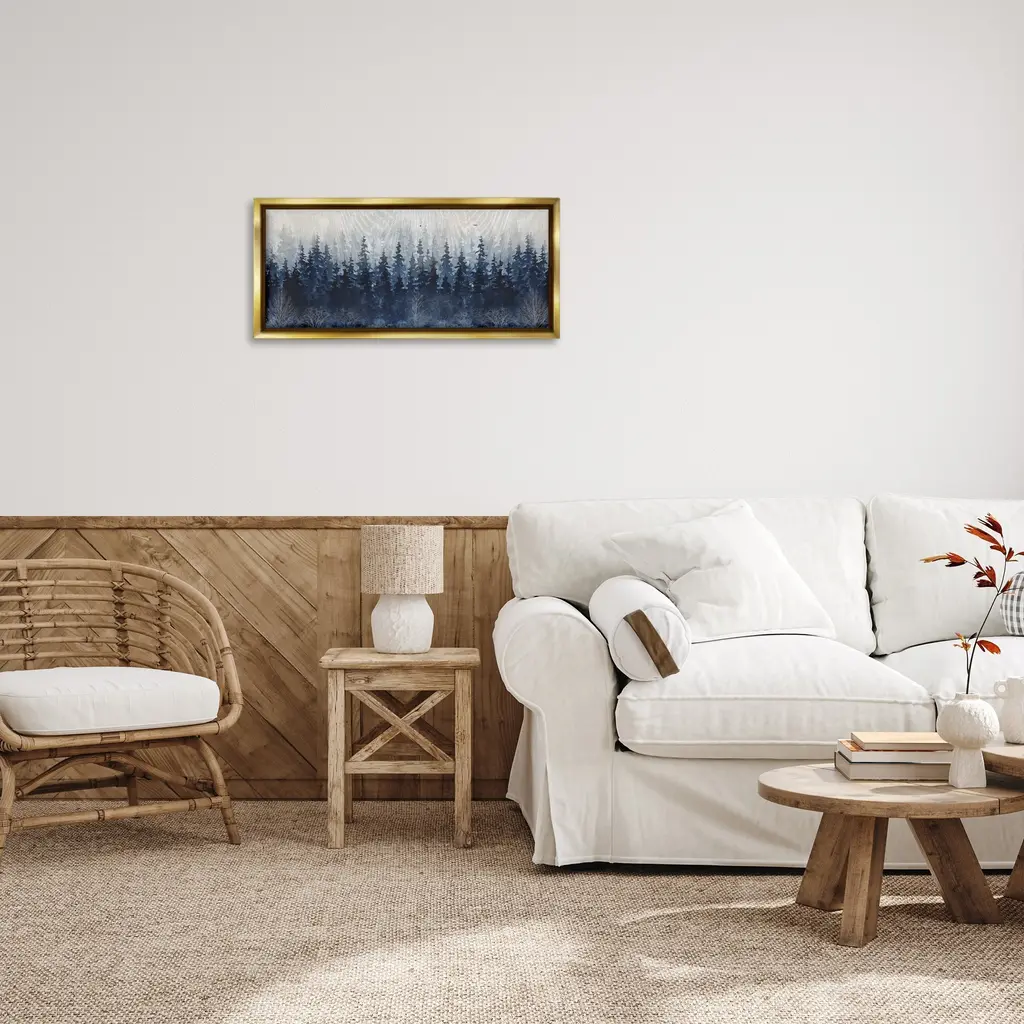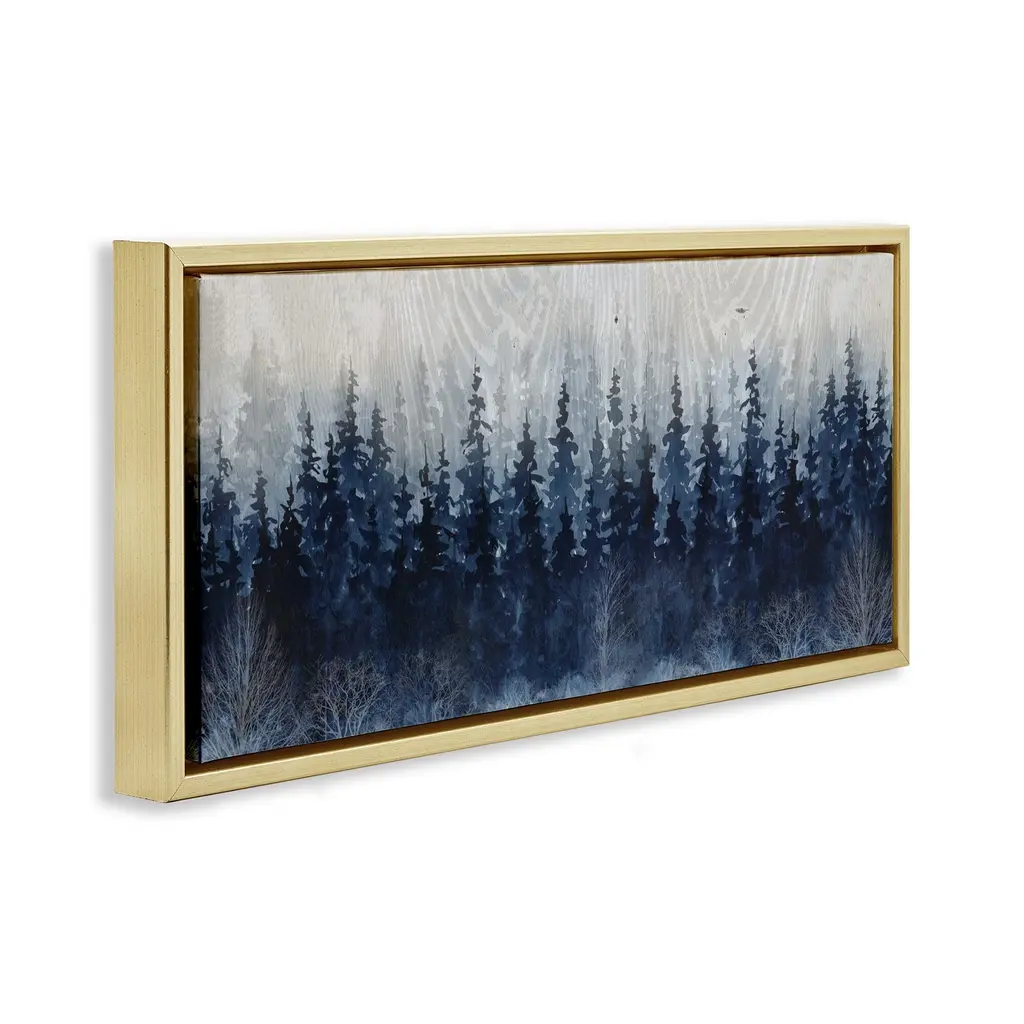 Stupell Rustic Blue Forest Tree Line Framed Floater Canvas Wall Art Design By Carol Robinson - 25 X 11 - Gold